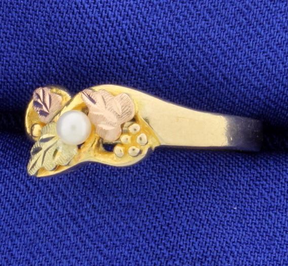 In 10K yellow, green, & rose gold the 2.9mm pearl has great color. Size 7 1/4 3.1g