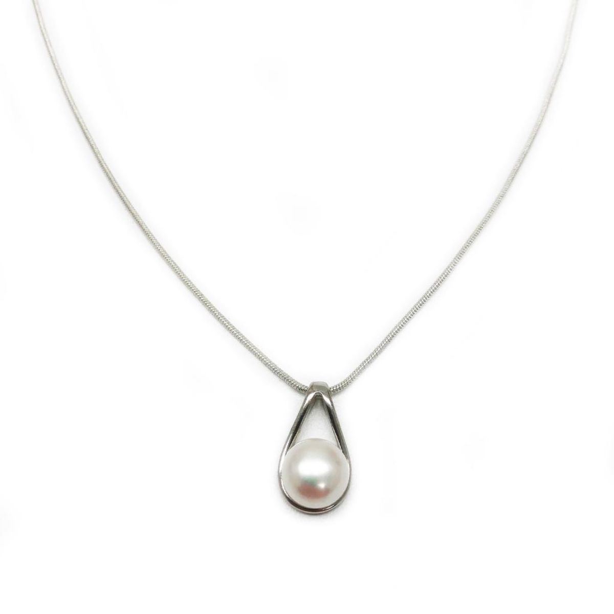 Pearl Mounted Pendant On 925 Snake Link Necklace. Known For Their Calming Effect Pearls Are A Symbol Of Purity And Generosity. This Necklace Can Be Worn For It's Beauty Or Can Be Used To Balance One's Karma. View Photos For Further Details.
