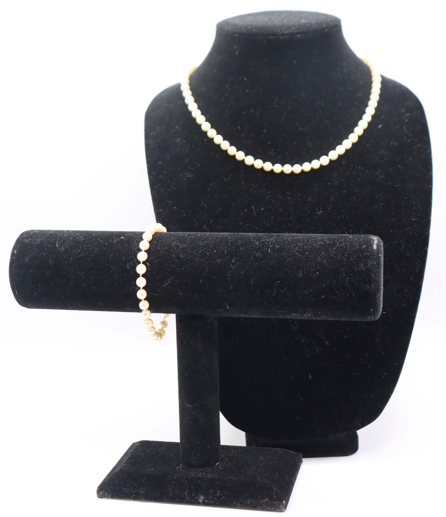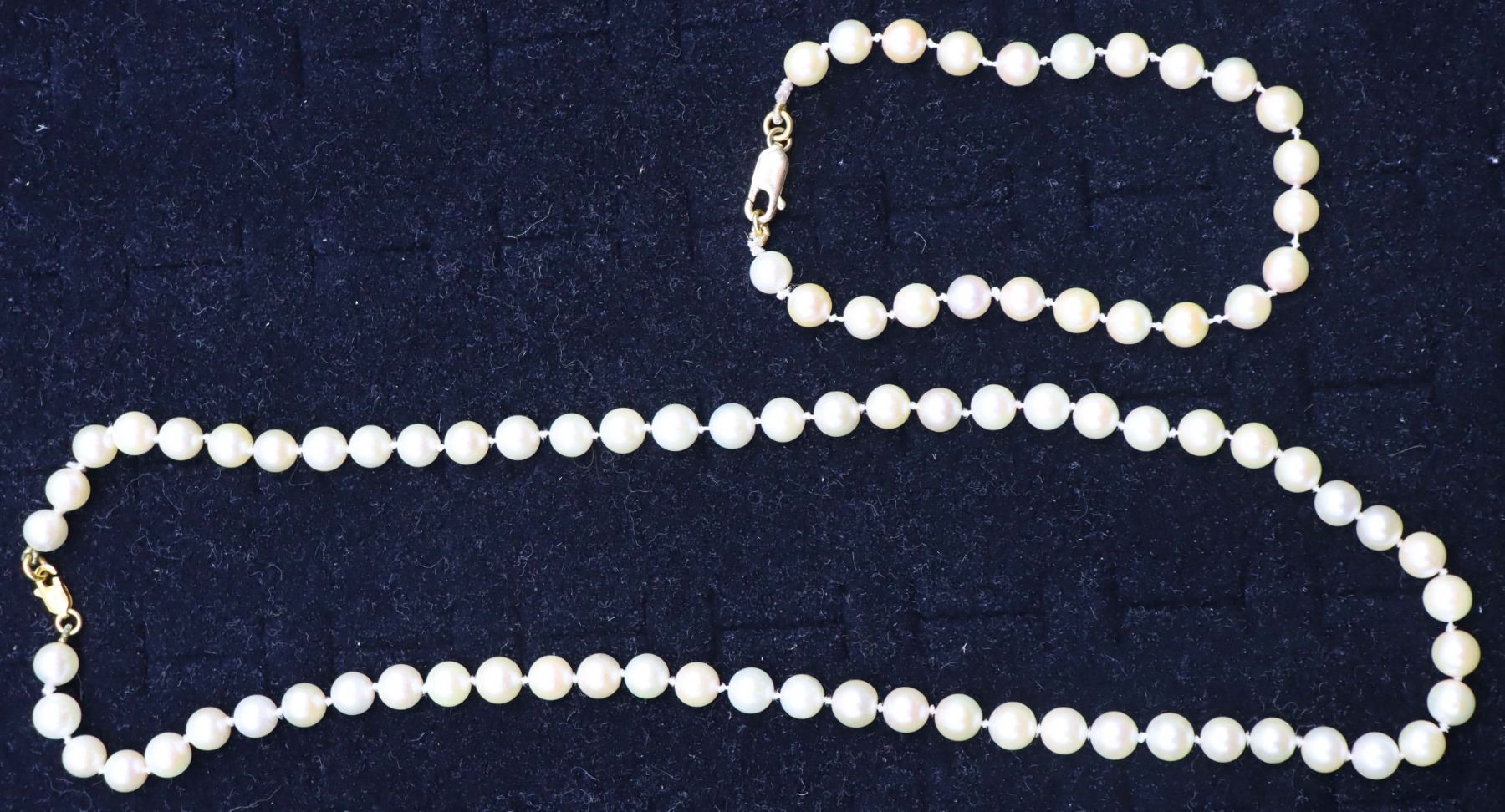 Necklace is approximately 18 in. long. Bracelet is 4 in. long. Pearls are approx 1/8 in diameter. Location SAFE