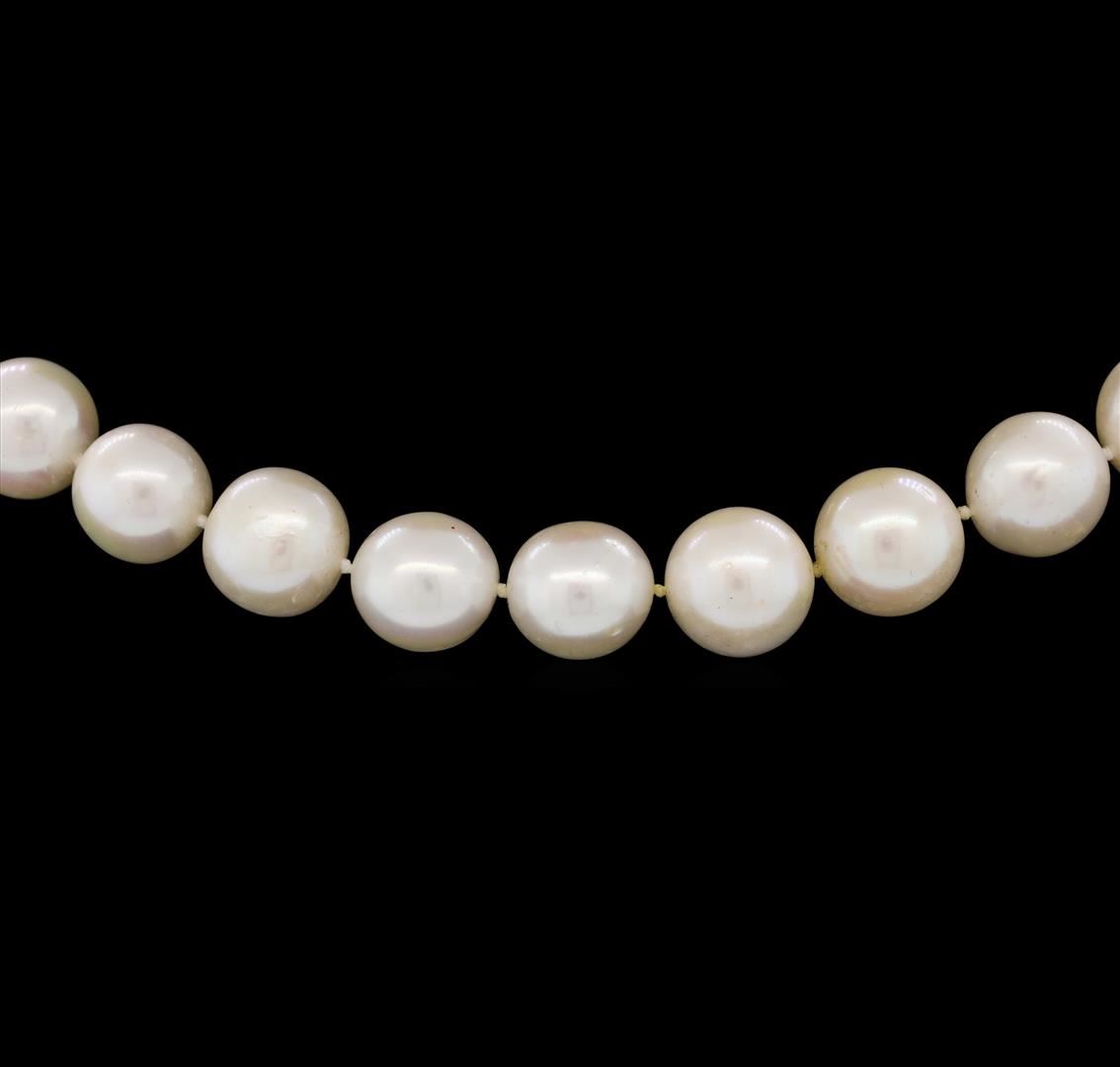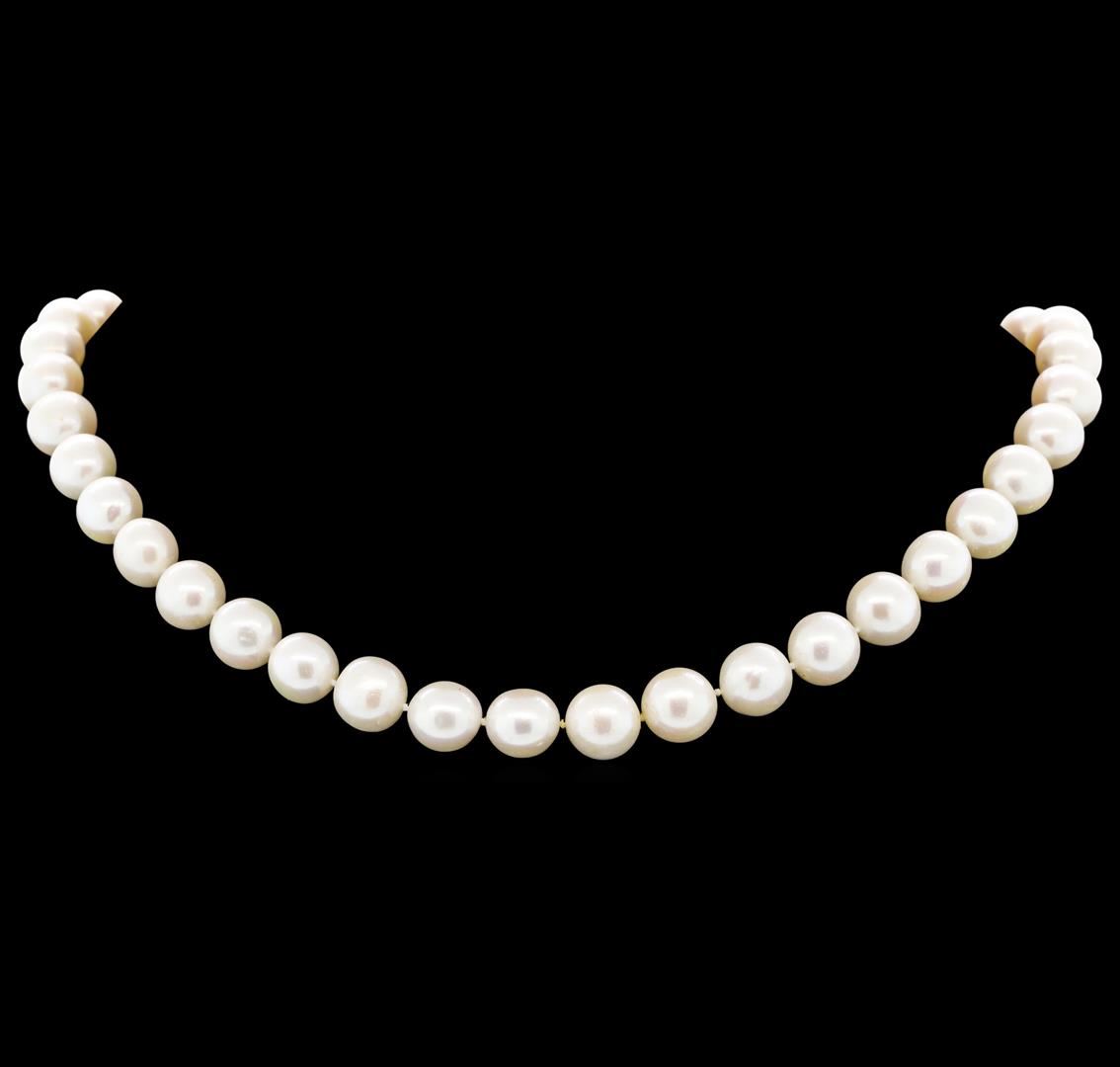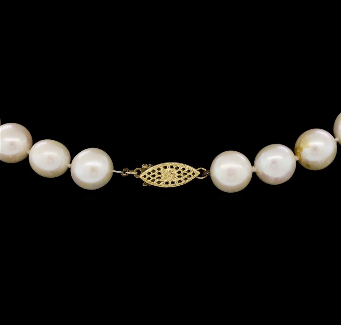 One lady's freshwater pearl necklace measuring eighteen inches in length containing: 14KT yellow gold weighing 2.0 grams containing forty 10mm freshwater pearls.