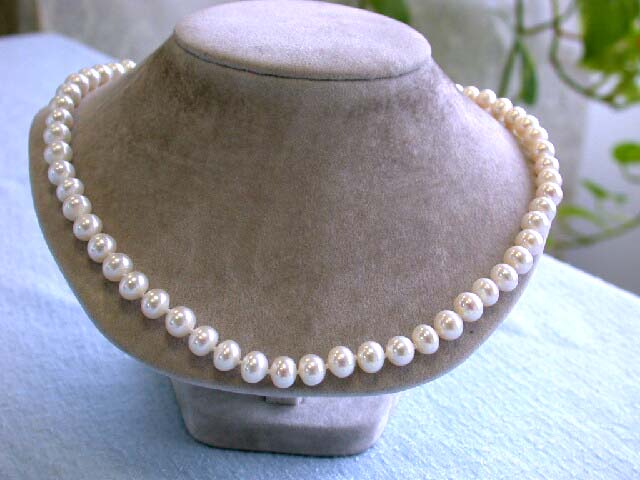 Fresh Water Pearl Necklace w/ approximately 7 mm bead size and a 14k Yellow Gold Clasp and approximately 15 inches long