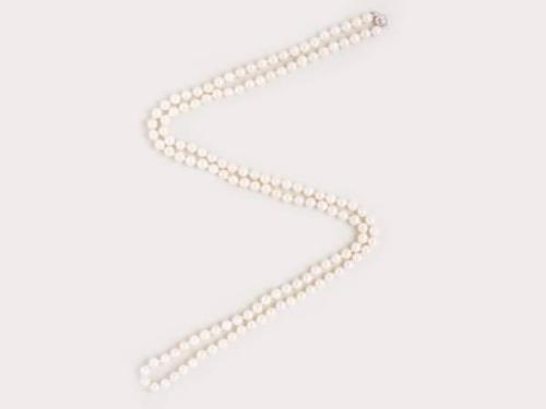 Cultivated pearls, pearl diameter: 7.0 mm, silver clasp, gross weight 70.6 g, length: 104 cm.