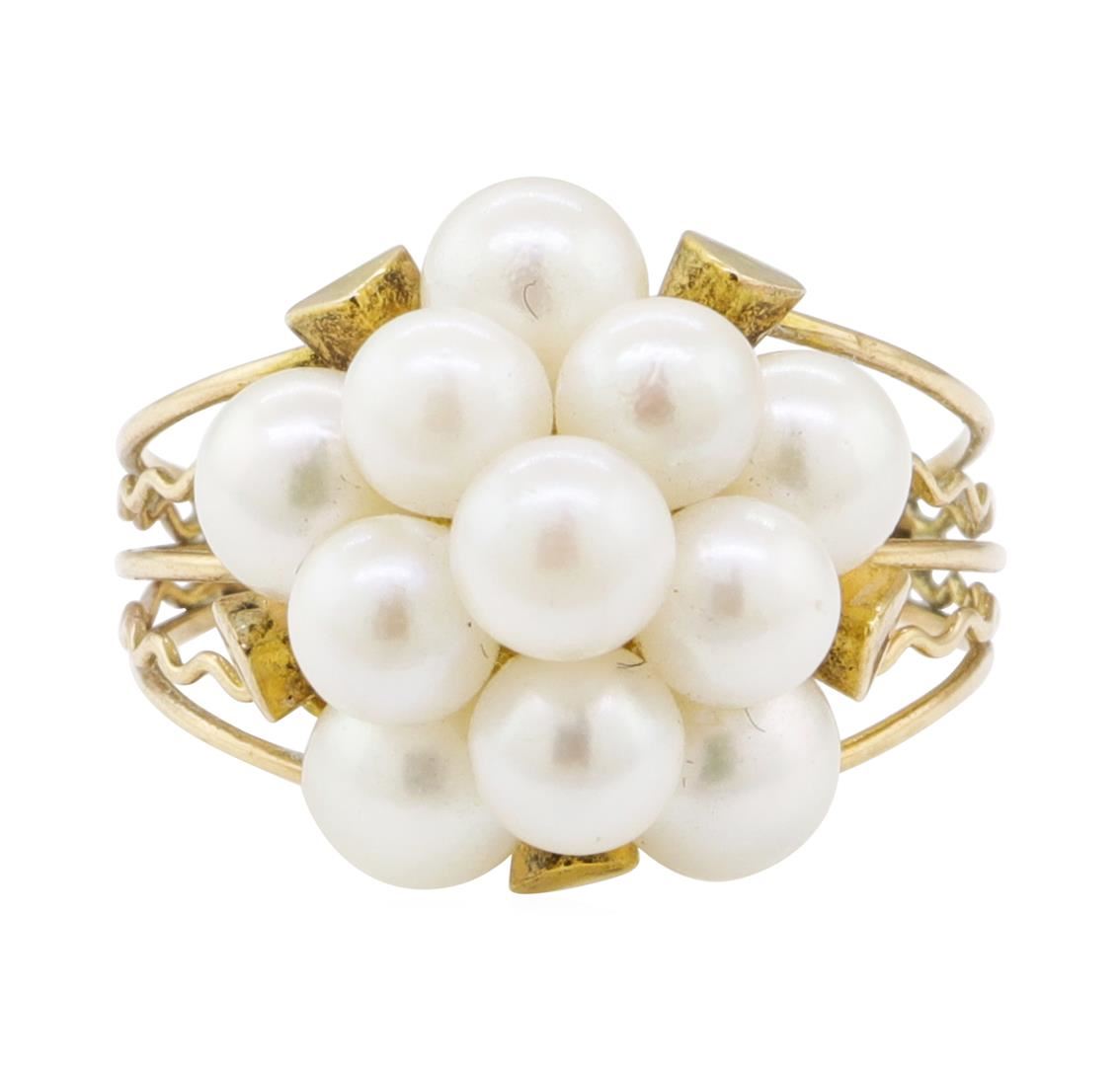 One ring featuring: 10KT yellow gold weighing 2.6 grams containing eleven pearls.