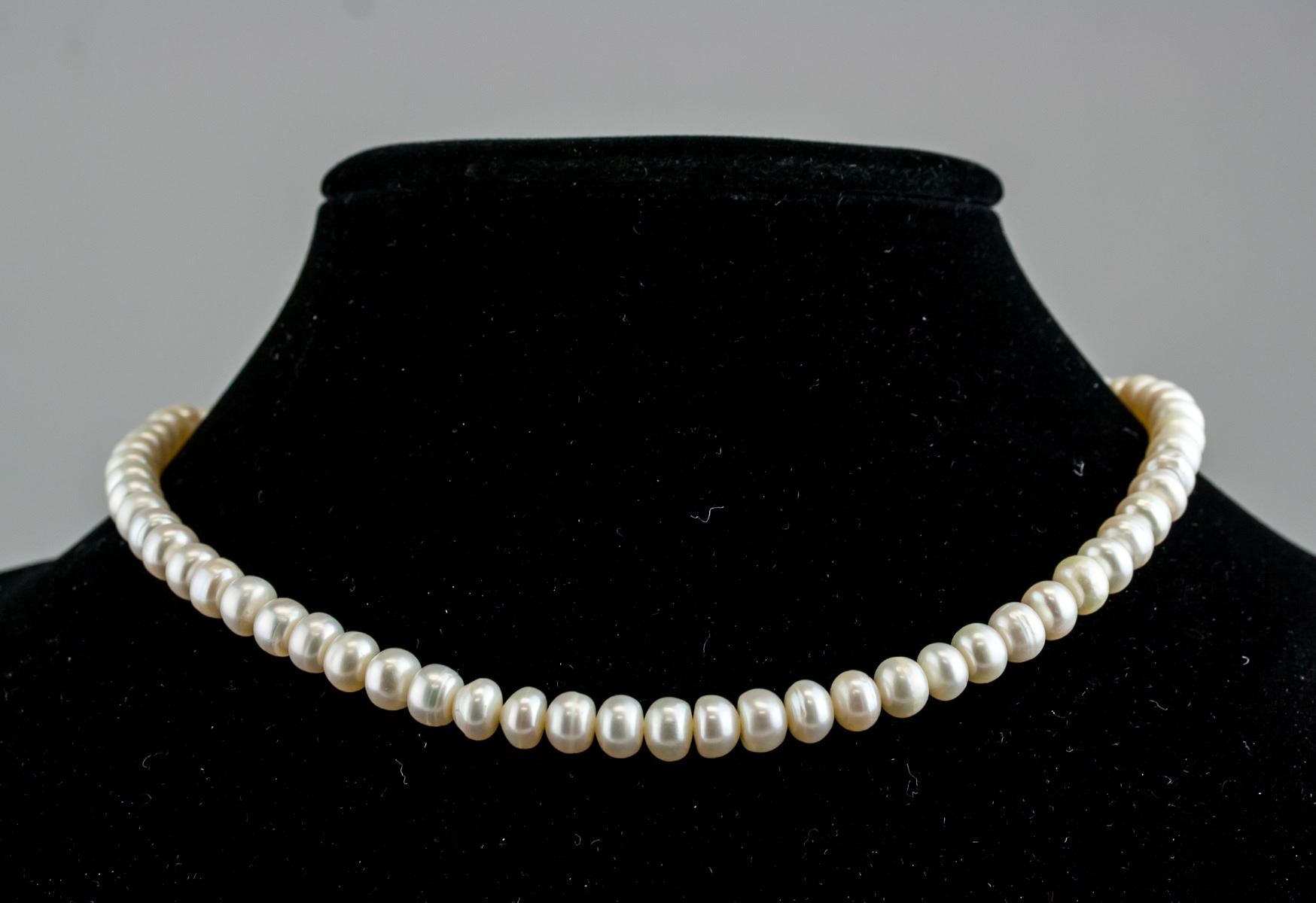Pearl necklace. Of round beads. 31 grams, diameter: 12 cm