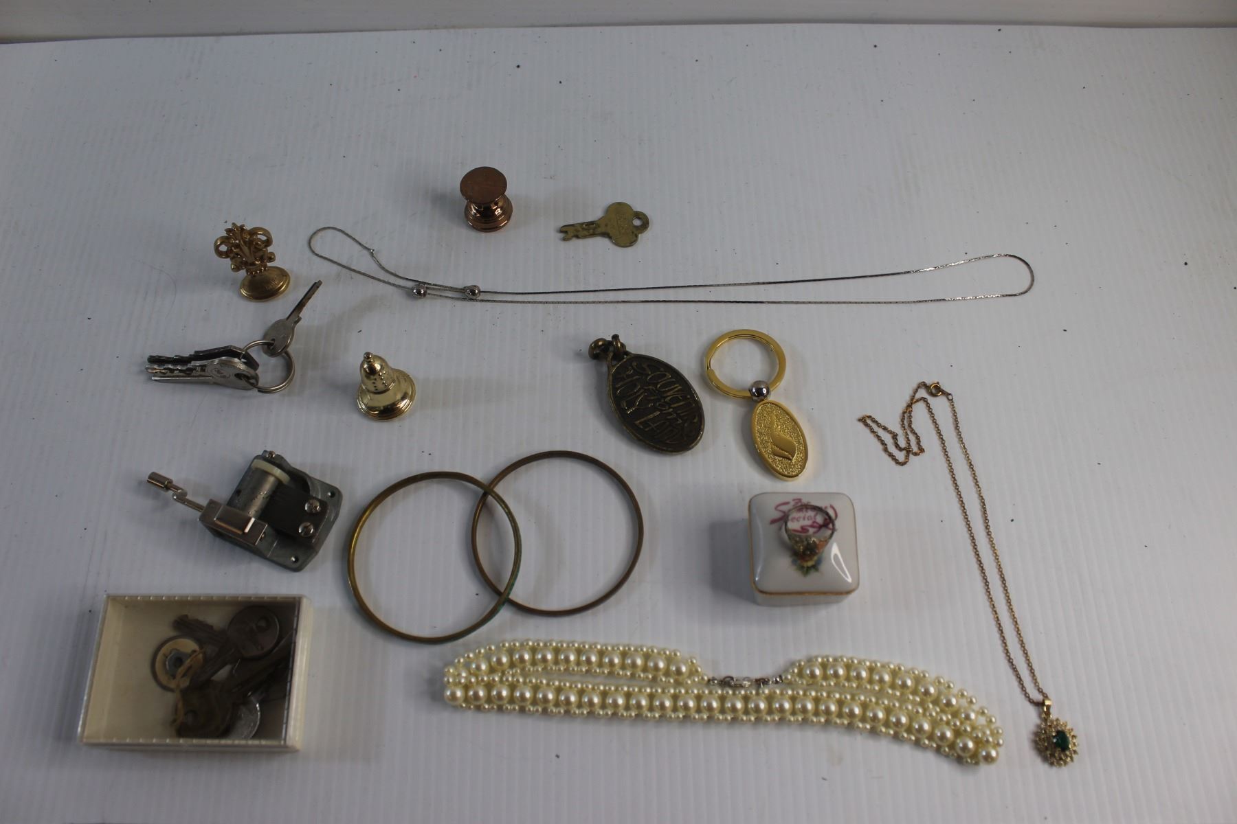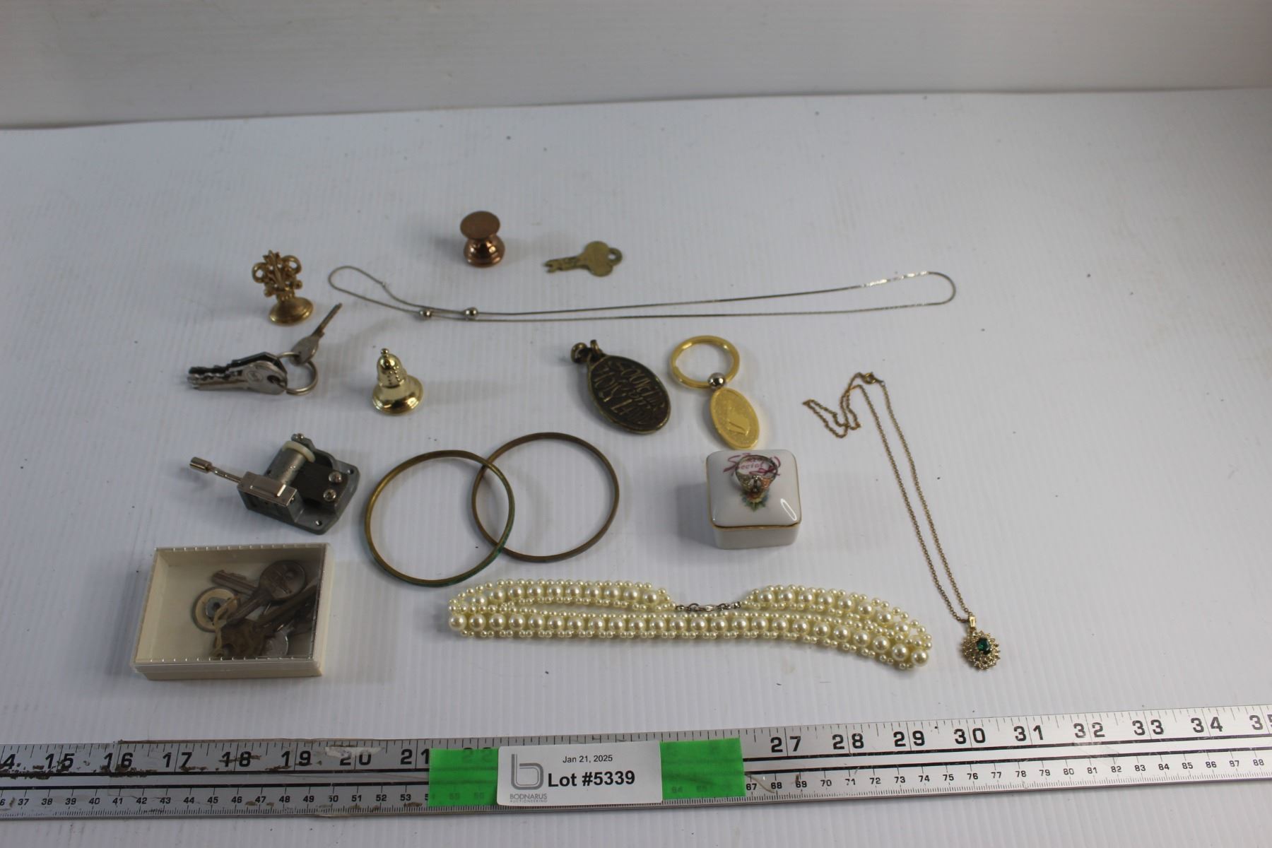 Pearl & Silver Necklaces, Key Chains, Keys, Bracelet Rings and Misc.
