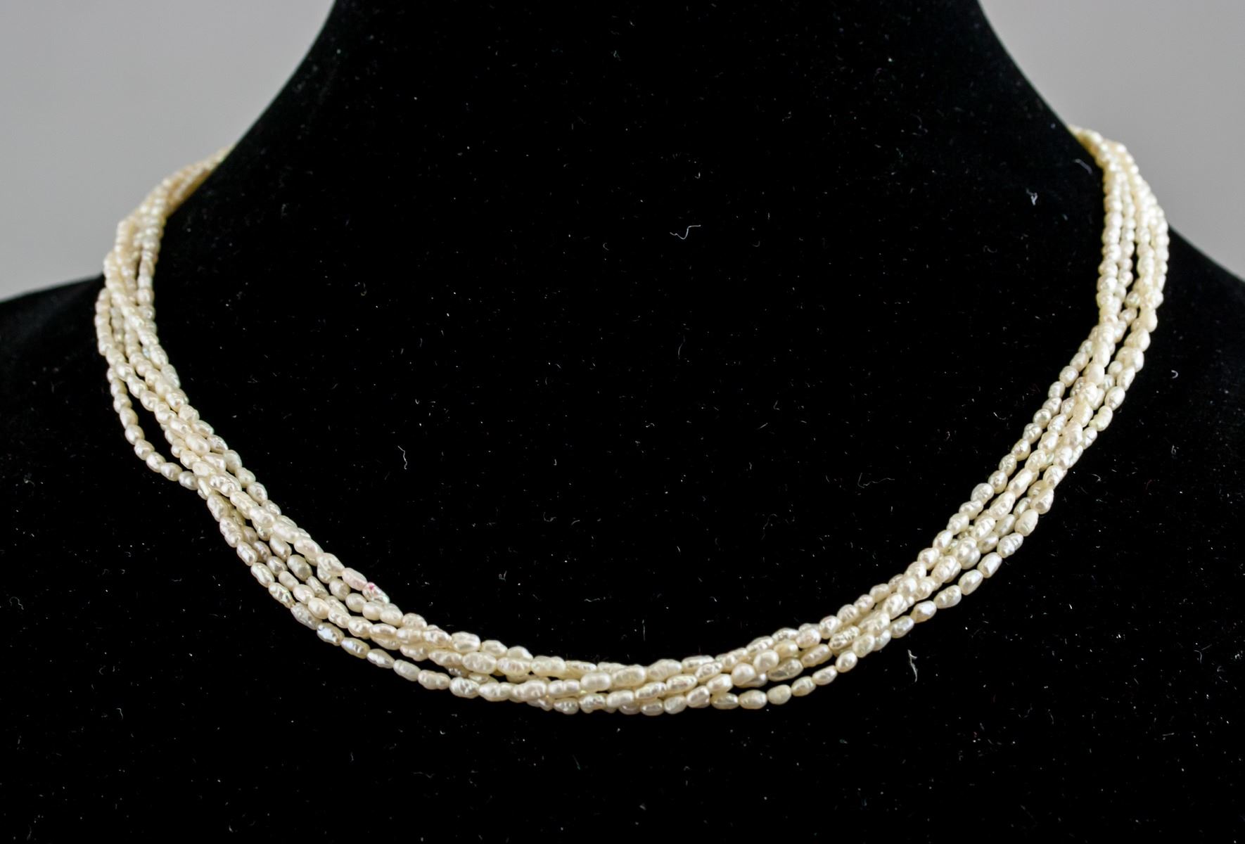 Pearl necklace. Of small beads. 15 grams, diameter: 13 cm