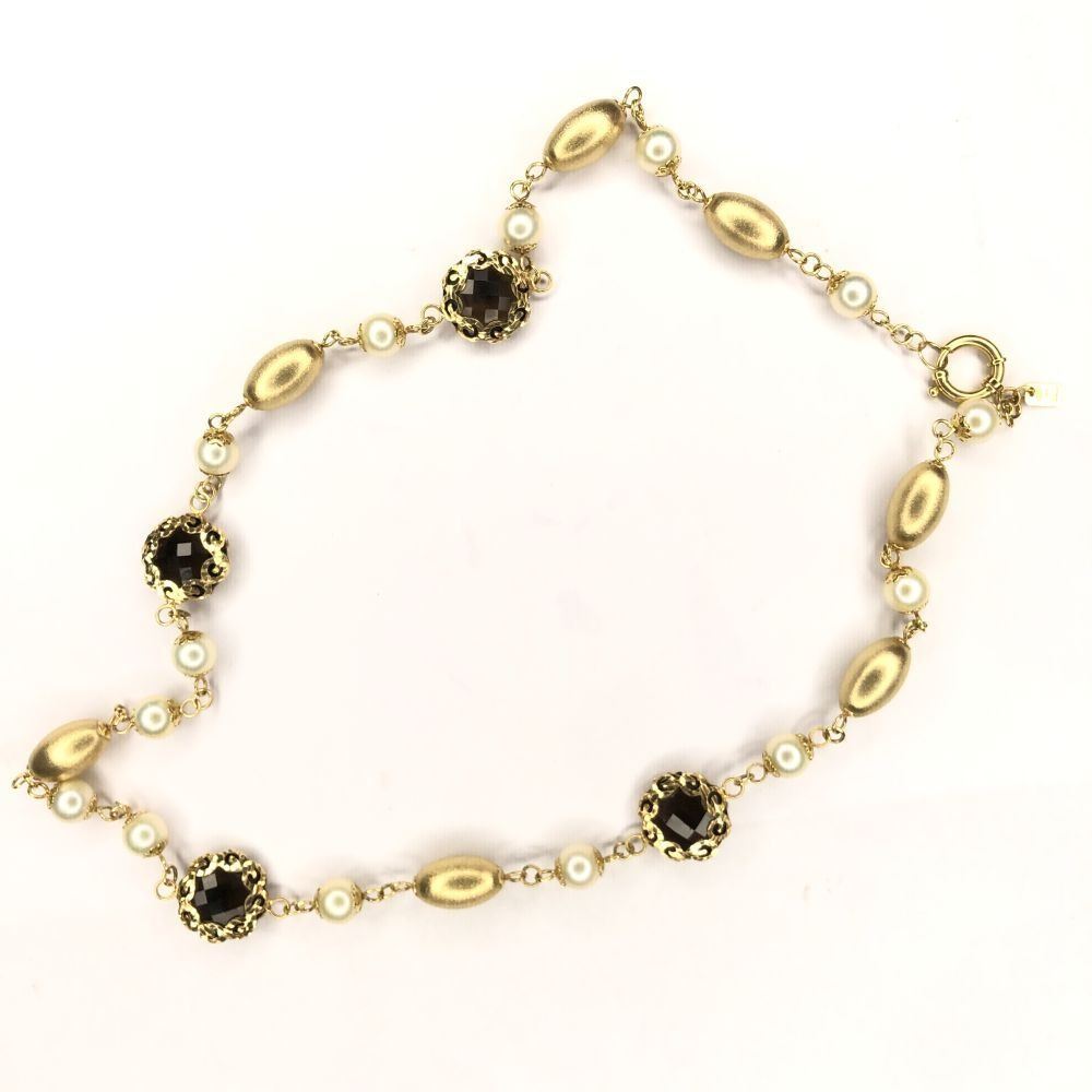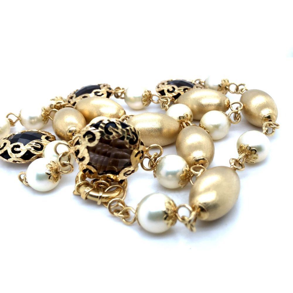 TITLE DESCRIPTION: Pearl, Smoky Quartz & amp; Ornate Italian Gold Necklace