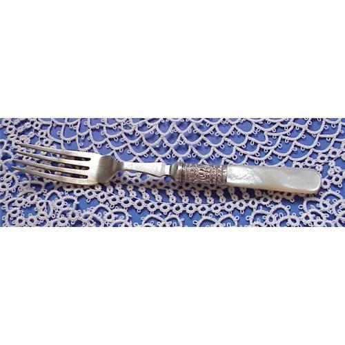 This is a lovely Victorian style fork, Love the pearl handle and the intricate silver work, hallmarked that separates pearl from blade, Excellent used condition, US Buyer please pay 7.00 for insured shipping.Thank You very much.