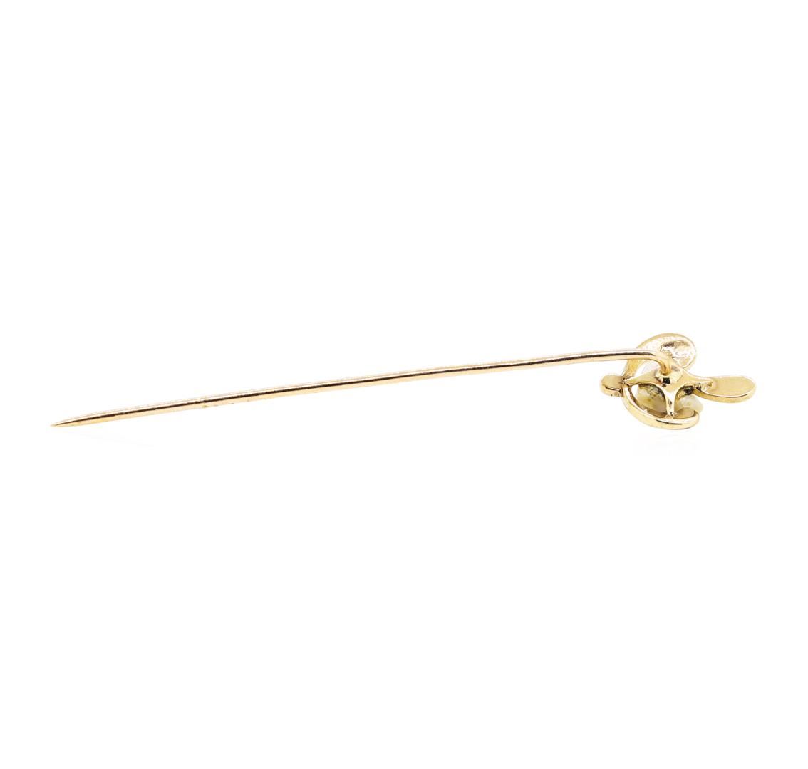One lady's vintage stick pin featuring: 10KT yellow gold weighing 0.8 grams containing ten seed pearls.