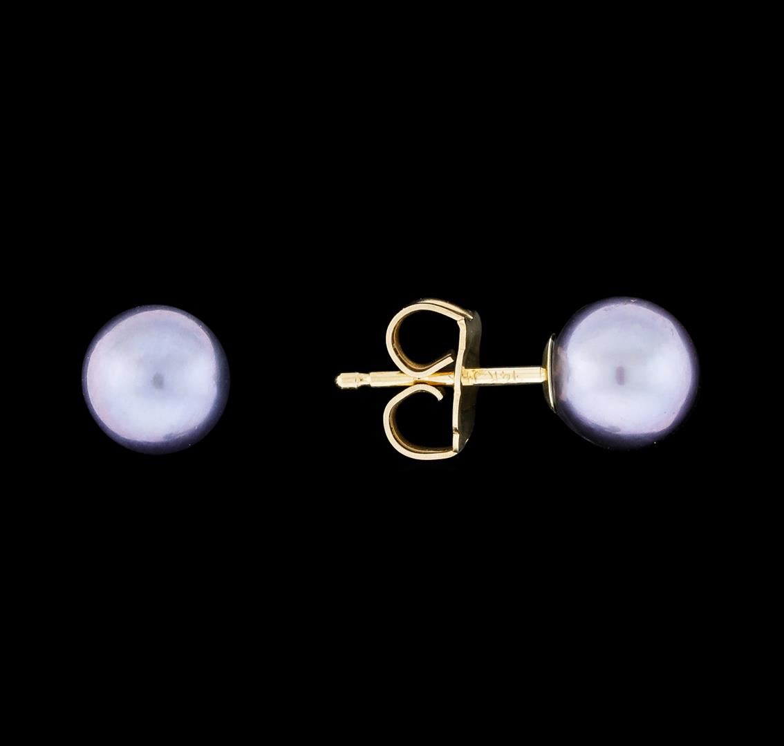One pair of earrings featuring: 14KT yellow gold containing two black pearls and a total item weight of 1.2 grams.