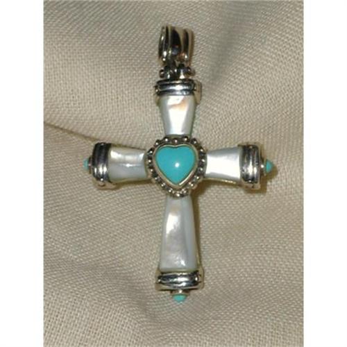 <tr><td>Title:Pearl&Turquoise Cross Pendent Silver </td></tr>