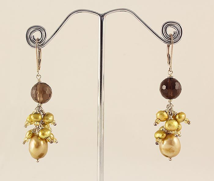 Pearl and Bead 50.20ctw Silver Dangling Earring **|**|** Simple Silver Dangling Earring made of Freshwater Pearl and Smokey Quarts Beads size: 1.2 inches; color: Gold,Green & Brown; stone: Pearl&Bead ; MSRP: $300