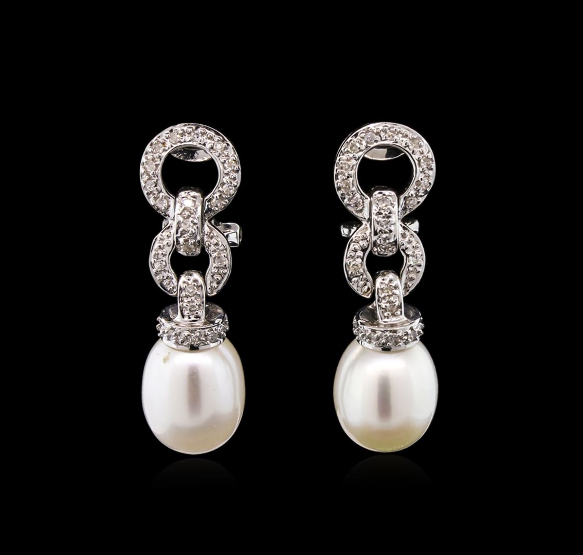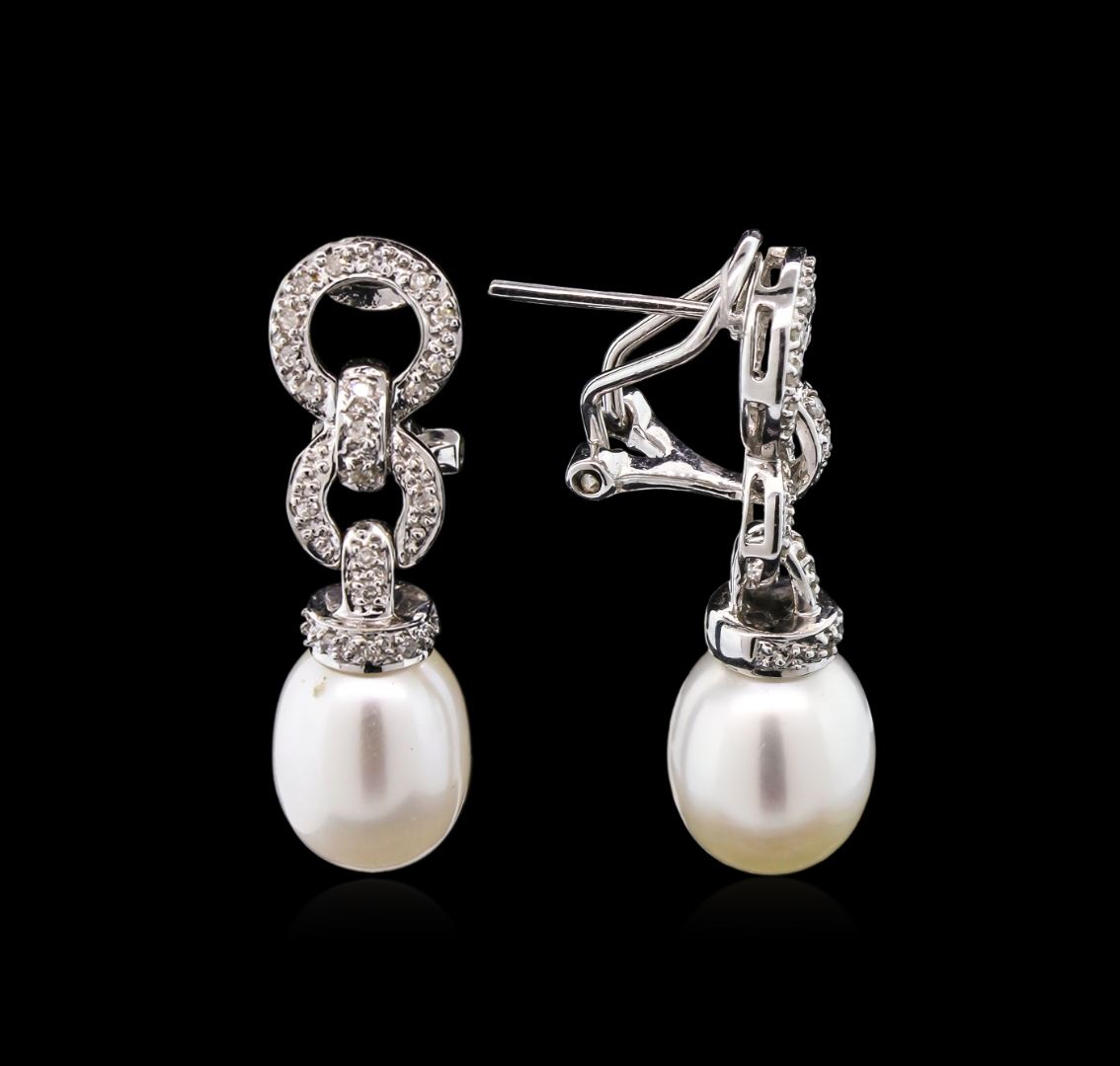 One pair of earrings featuring: 14KT white gold weighing 4.21 grams containing two pearls and diamonds with a total diamond weight of 0.17ct.