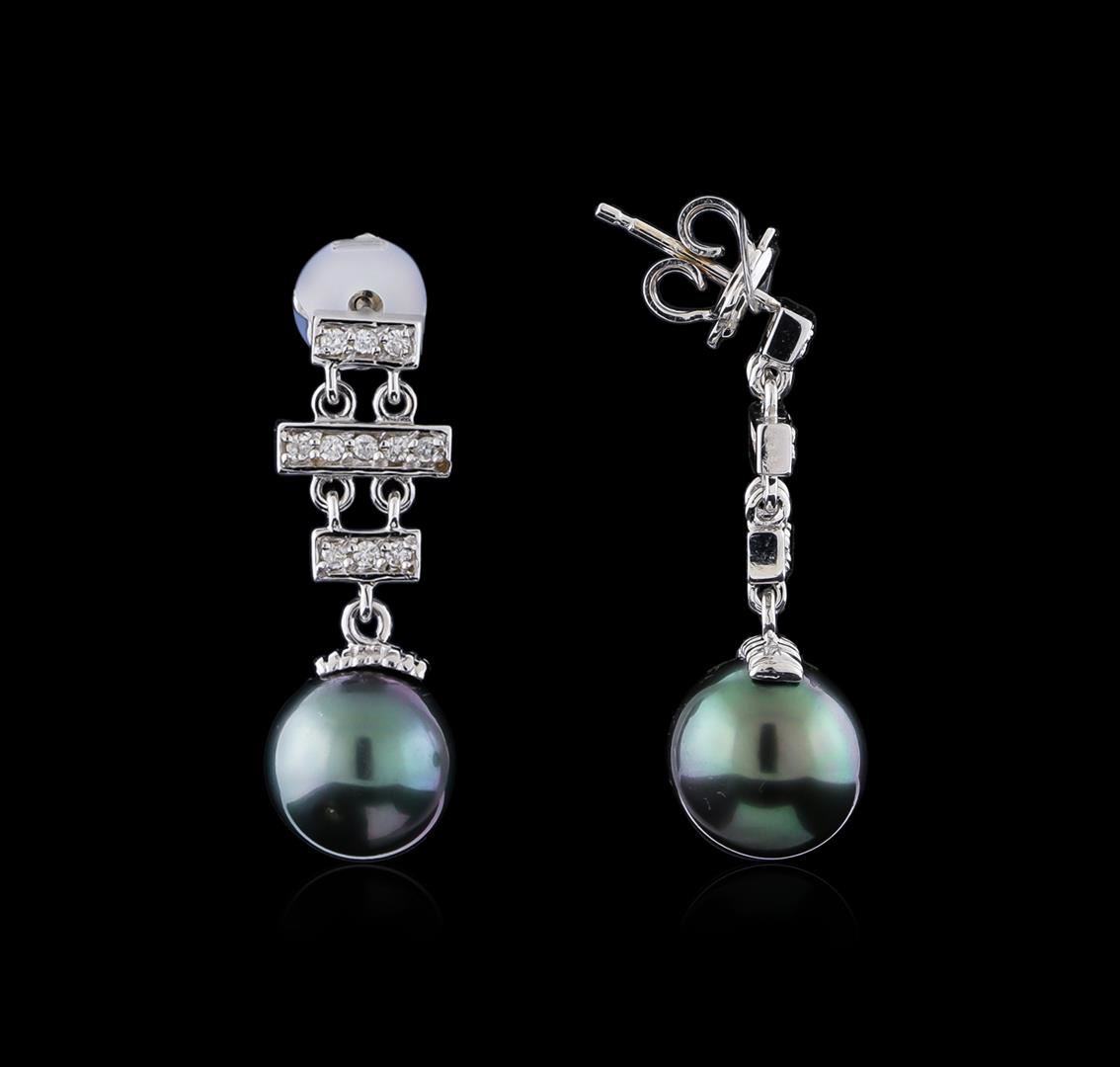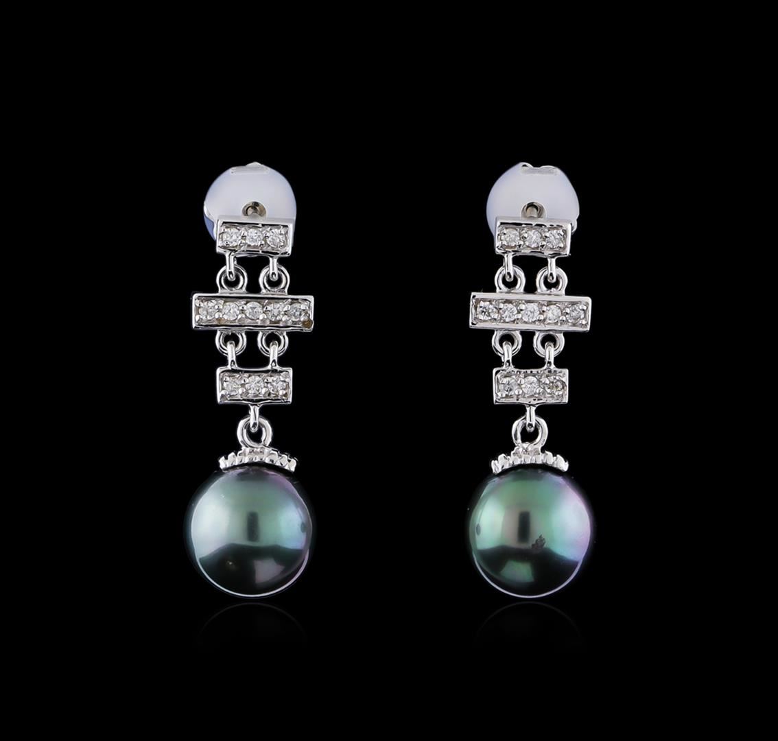 One pair of earrings featuring: 14KT white gold weighing 3.72 grams containing two pearls and diamonds with a total diamond weight of 0.22ct.