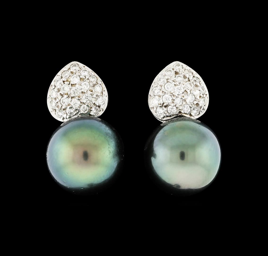 One pair of earrings : 14KT white gold weighing 2.67gm containing pearl and diamonds with a total weight of 0.3ctw.