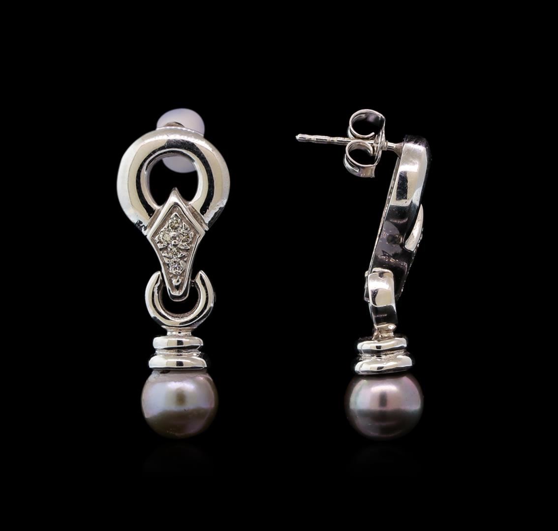 One pair of earrings featuring: 14KT white gold containing Pearl with a total weight of 4.75ct and diamonds with a total weight of 0.08ctw.