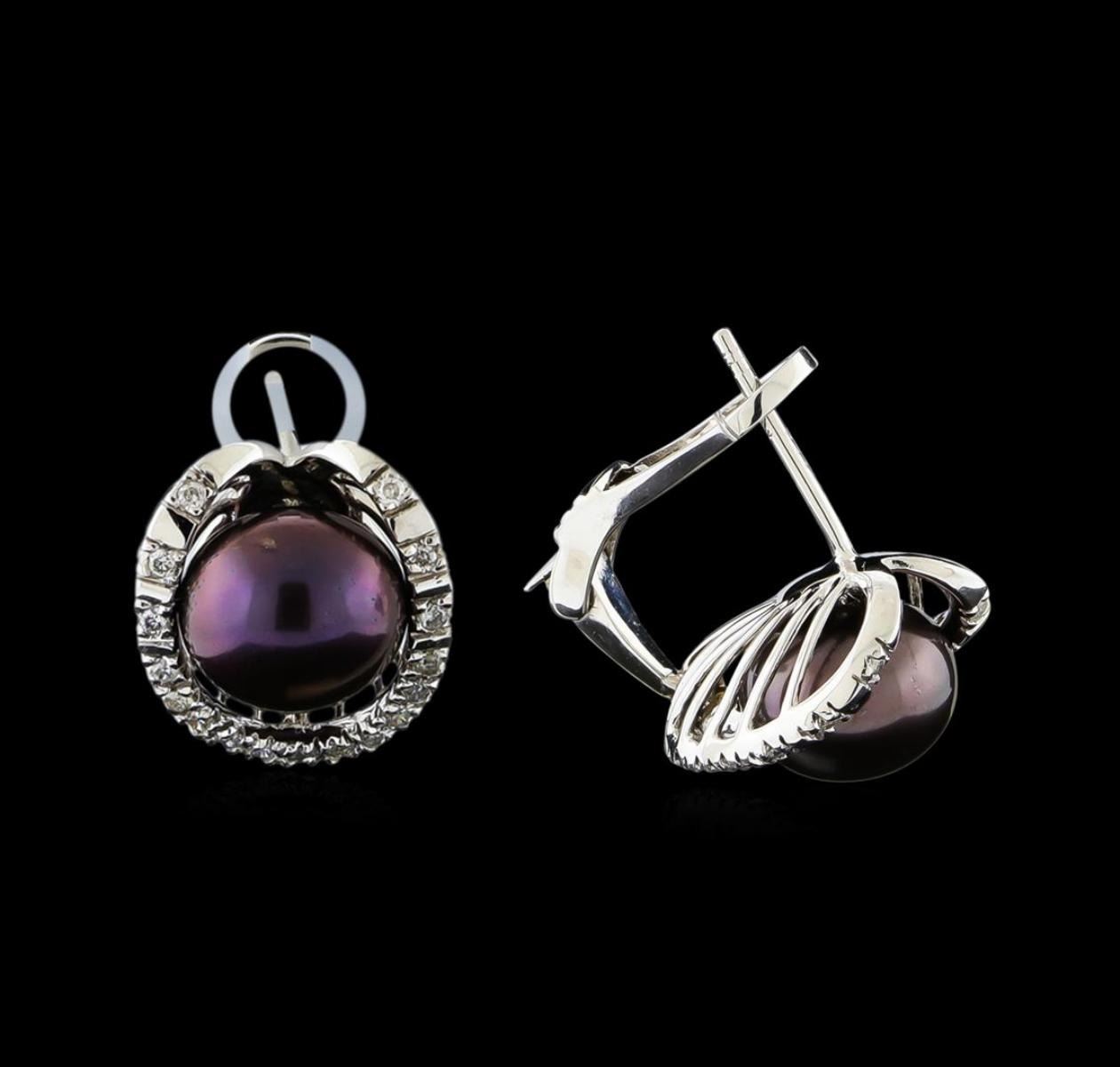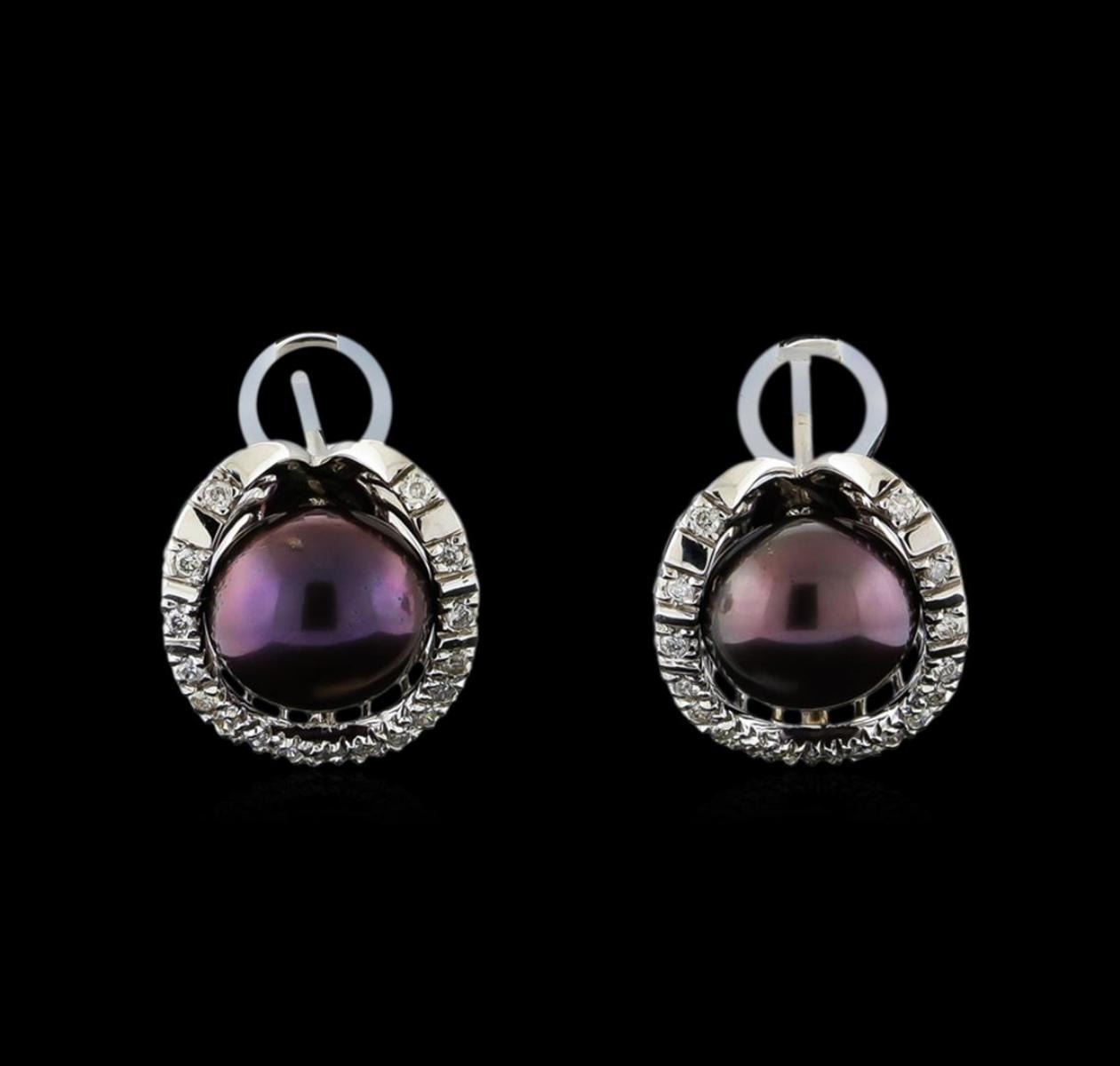 One Pair Earrings featuring: 14KT White Gold weighing 4.93 grams containing two Pearls and Diamonds with a total diamond weight of 0.26ct.