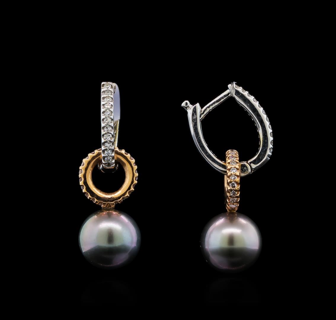 One pair of earrings featuring: 14KT white and rose gold containing 9mm Pearls and Diamonds with a total weight of 0.32ctw.