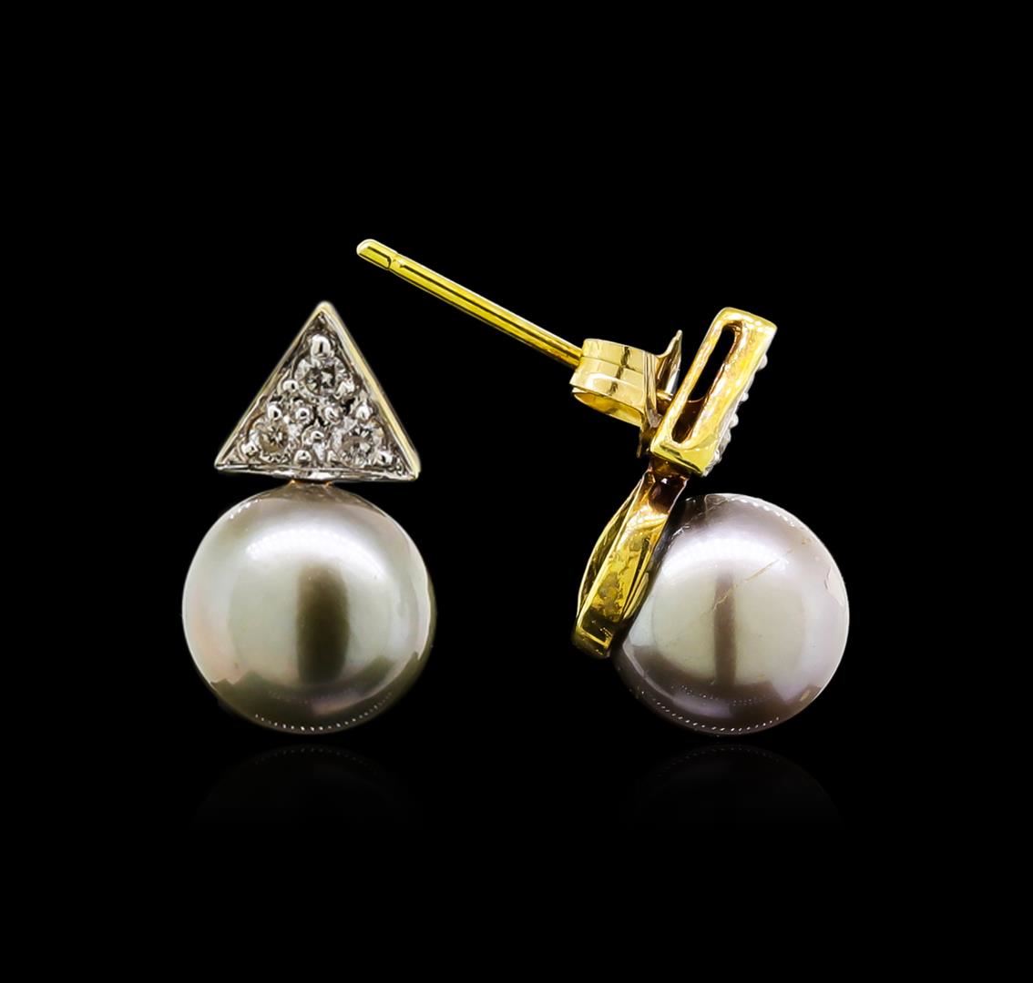 One pair of earrings featuring: 14KT yellow gold weighing 2.00 grams containing two pearls and diamonds with a total weight of 0.06ct.