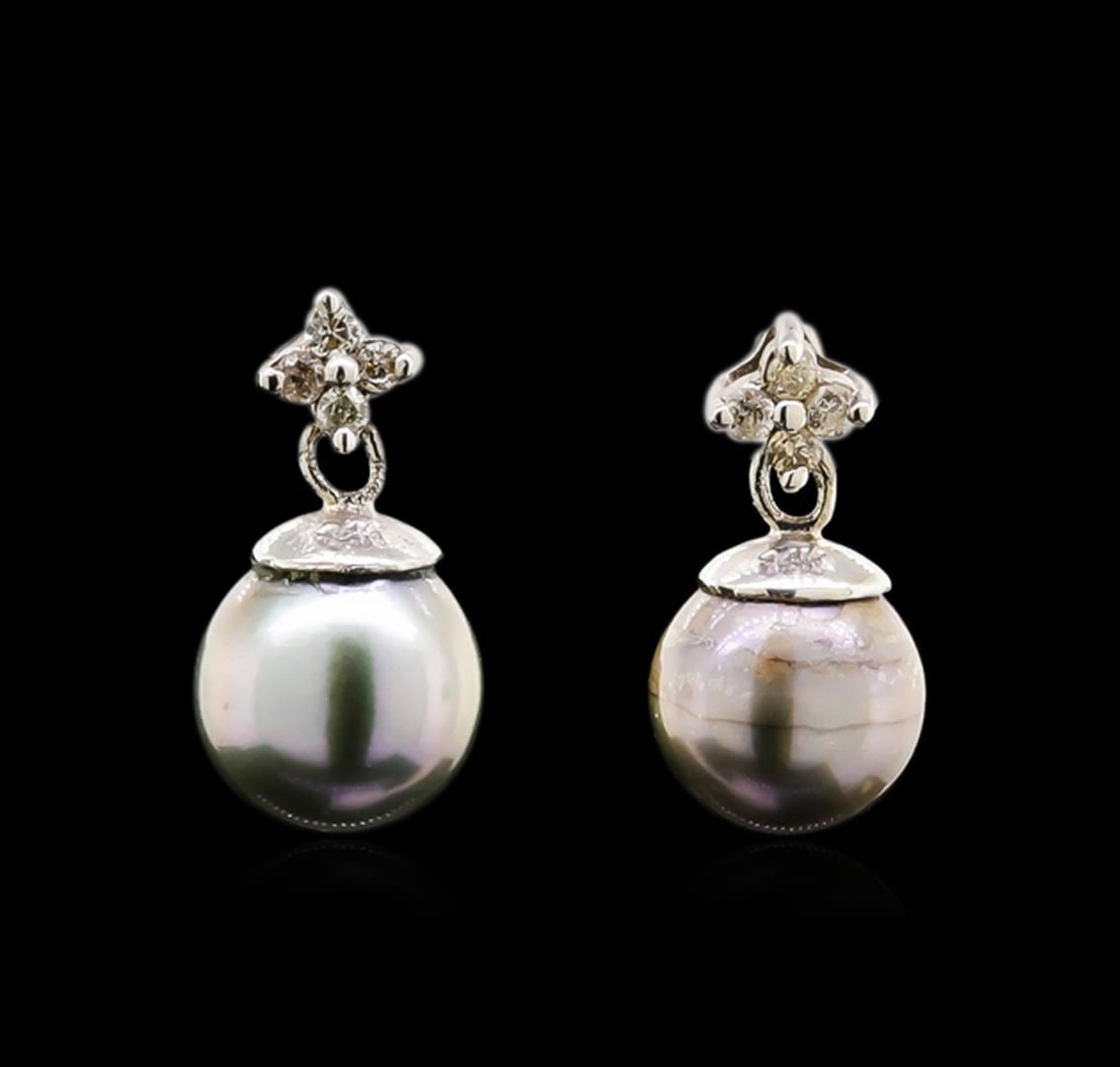 One pair of earrings featuring: 14KT yellow gold weighing 1.33 grams containing two pearls and diamonds with a total weight of 0.10ct.