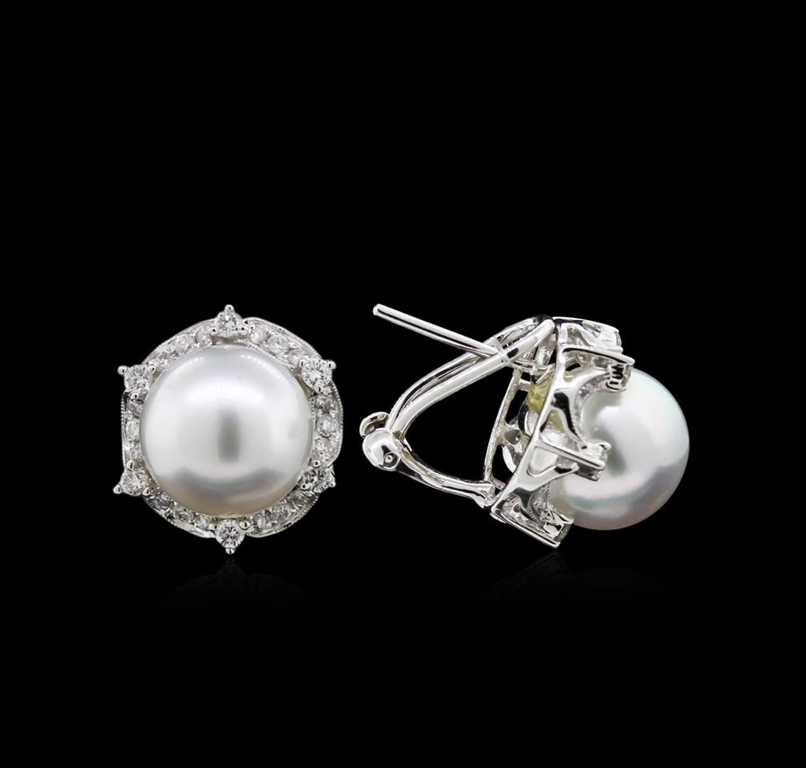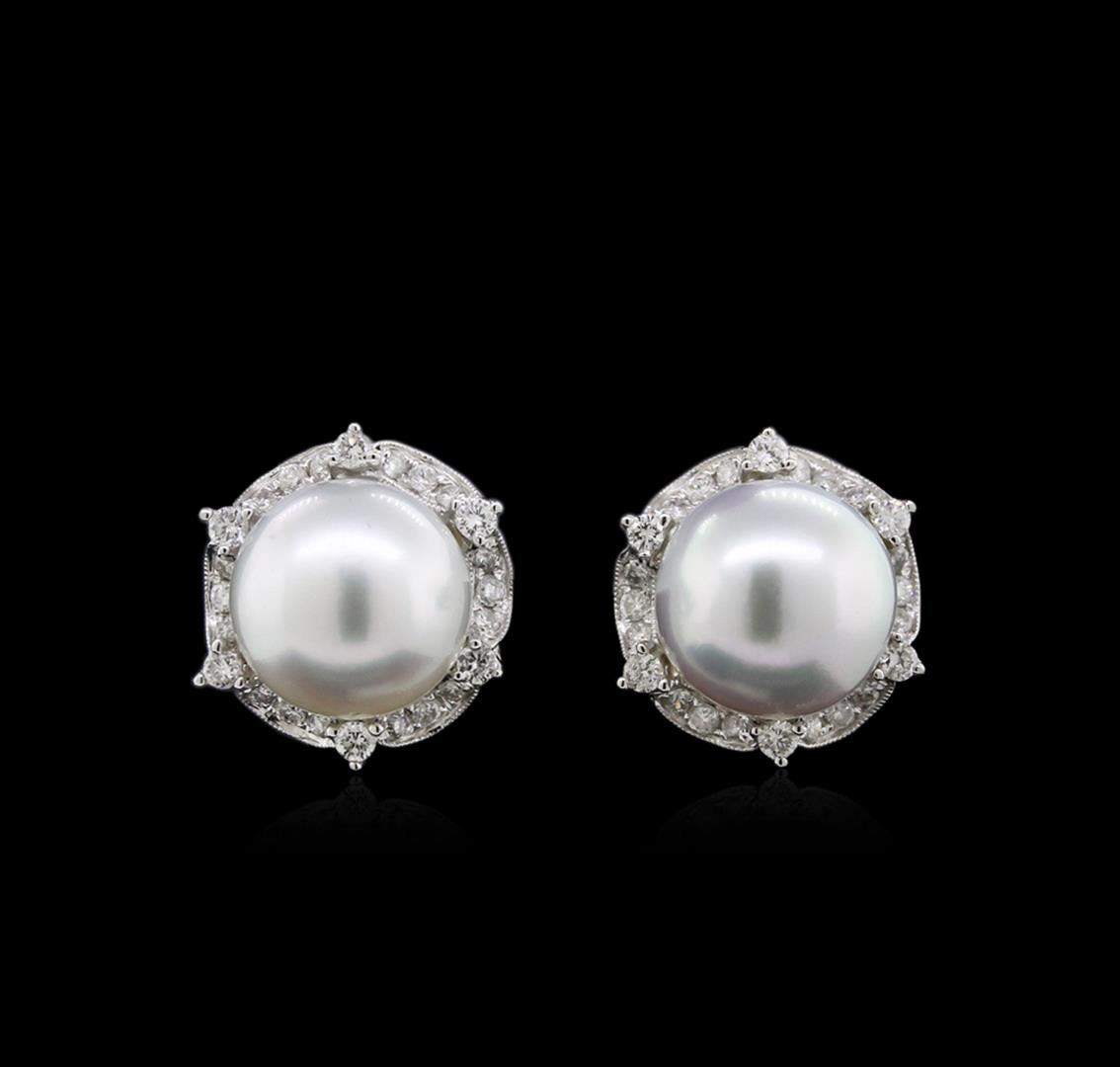 One pair of earrings featuring: 18KT white gold weighing 4.10 grams containing two pearls measuring approximately 10mm and diamonds with a total weight of 0.56ct.