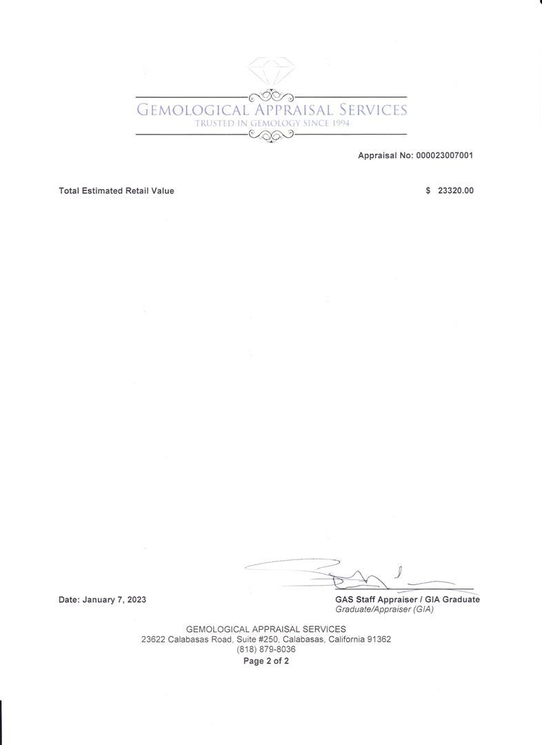 Regarding Appraised Jewelry, Watches and Loose Stones - SAA sends most jewelry, watches, accessories and loose stones out to a third-party for appraisals. All such lots are sold AS IS and may have been worn, been previously repaired, altered, customized (including having been modified with after-market stones or had the bezel changed in its entirety on certain jewelry or watches), or been embellished. For purposes of our actions, the terms custom, modified, or after-market may be used interchangeably. Such wear, repair or changes may display varying levels of evidence. The bidder hereby acknowledges that the absence of any reference to the condition of a lot does not imply the absence of wear, repairs, customization, or defects. While SAA makes every effort to call to the attention of bidders the use of after-market parts in jewelry and watches sold, the use of such parts or stones shall not constitute a warranty or representation that the items are original in their entirety. These modifications, customizations, and alterations may impair the ability of the original manufacturer to repair such item or certify the item as authentic All descriptions and statements related to such lots, including measurement, authorship, source or origin, or other aspects are qualified opines and do not constitute a warranty or representation, and are provided for identification purposes only. Not all Jewelry, watches or loose stones are appraised, and the appraisals are provided for bidders only in certain instances at the discretion of SAA. Our appraisals are conducted by independent third-party appraisal firms. Such firms may be certified GIA Gemologists or have education in the industry or alternative certifications. Appraisals should be used for verification of gemstone and/or metal weight, size, and grade only, not actual value for resale or insurance purposes. Appraisal value should be not considered for actual value, as price varies greatly from retail locations and other merchants in different geographic locations. All Items auctioned by SAA should not be purchased with a view or expectation toward resale for appraisal price given, or to make a profit. The ultimate value for which an item can be resold may vary drastically from the appraisals listed by SAA. All dimensions and weights of such lots are approximate and are consistent with standards and practices in the industry. Condition reports are provided as a service to prospective bidders. Bidders should note that such descriptions are not warranties and that watches may need general service, change of battery or further repair work for which the buyer is solely responsible. Certain watch bands from protected species of animals (i.e. alligator, crocodile) and items made of ivory and tortoise may be subject to restrictions in certain countries.