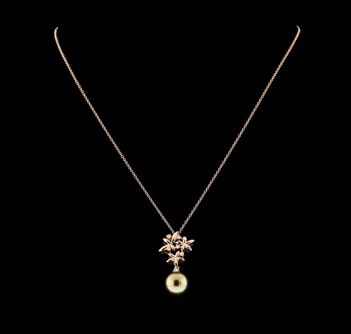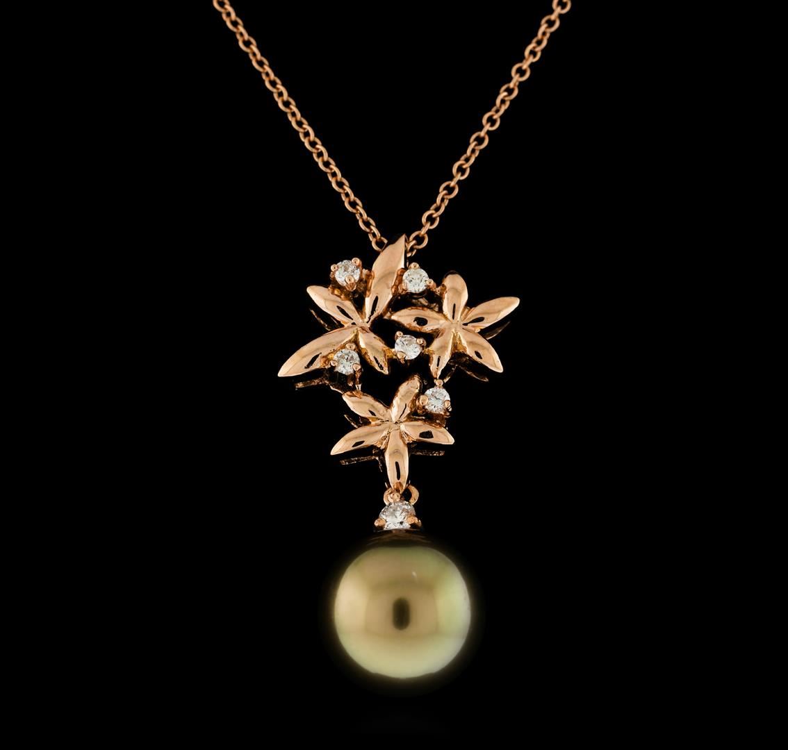 One pendant with chain : 14KT rose gold weighing 2.00gm containing pearl and diamonds weighing 0.18ctw.