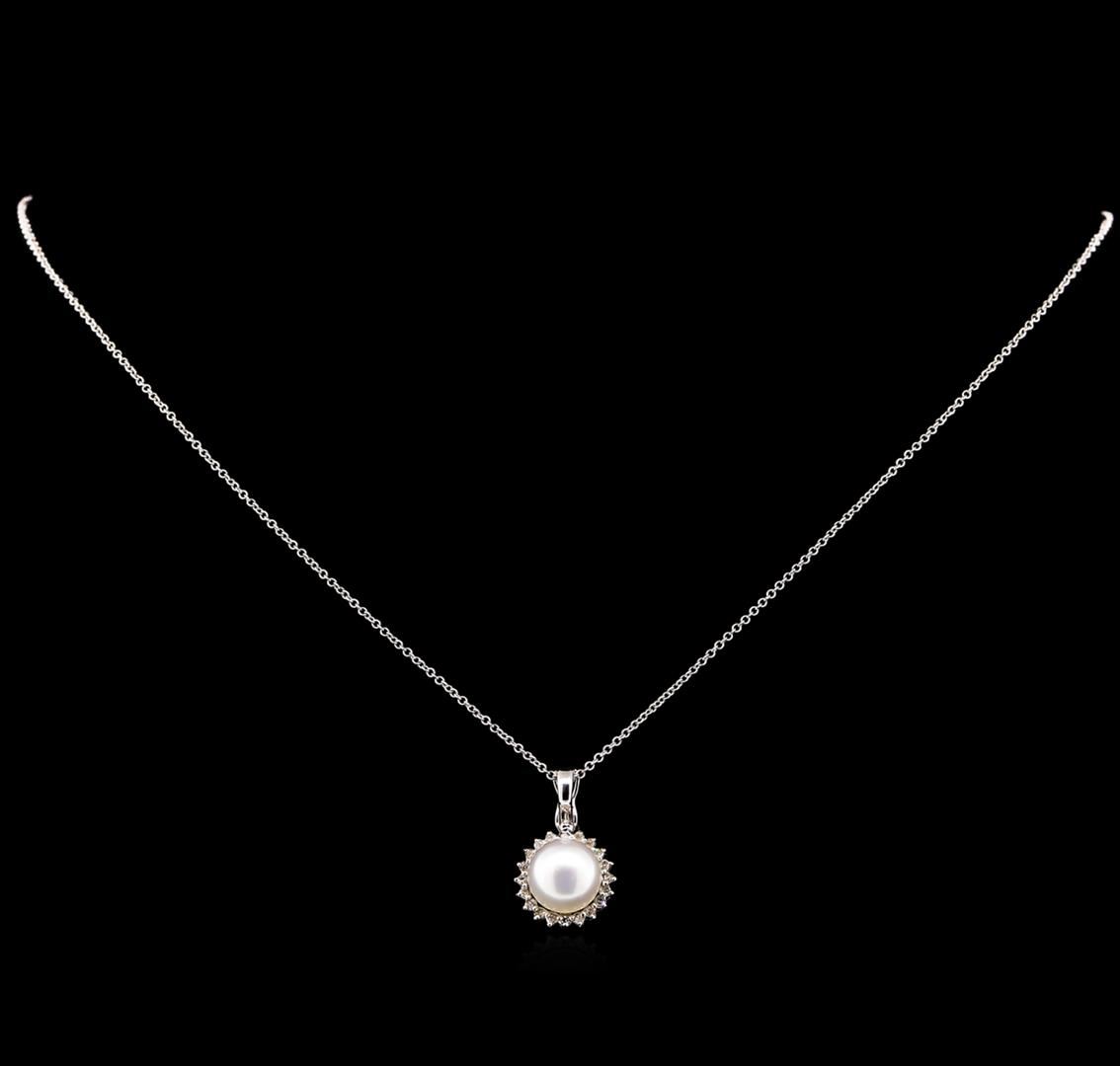 One pendant with chain featuring: 14KT white gold weighing 1.00 gram containing one pearl and side diamonds with a total weight of 0.10ct.