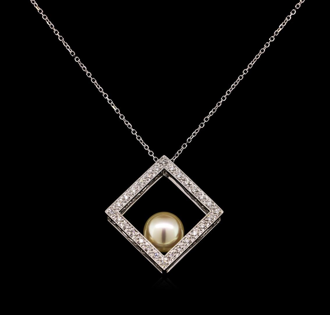 One pendant with chain featuring: 14KT white gold weighing 2.92 grams containing one pearl measuring 8mm and side diamonds with a total weight of 0.25ct.