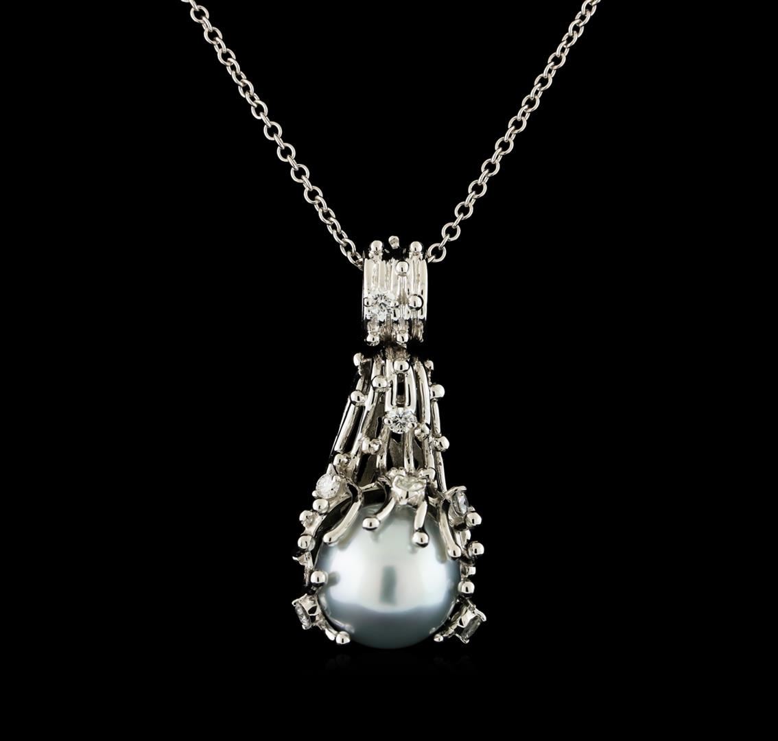 One Pendant With Chain featuring: 14KT White Gold weighing 5.44 grams containing one Pearl and Diamonds with a total diamond weight of 0.31ct.