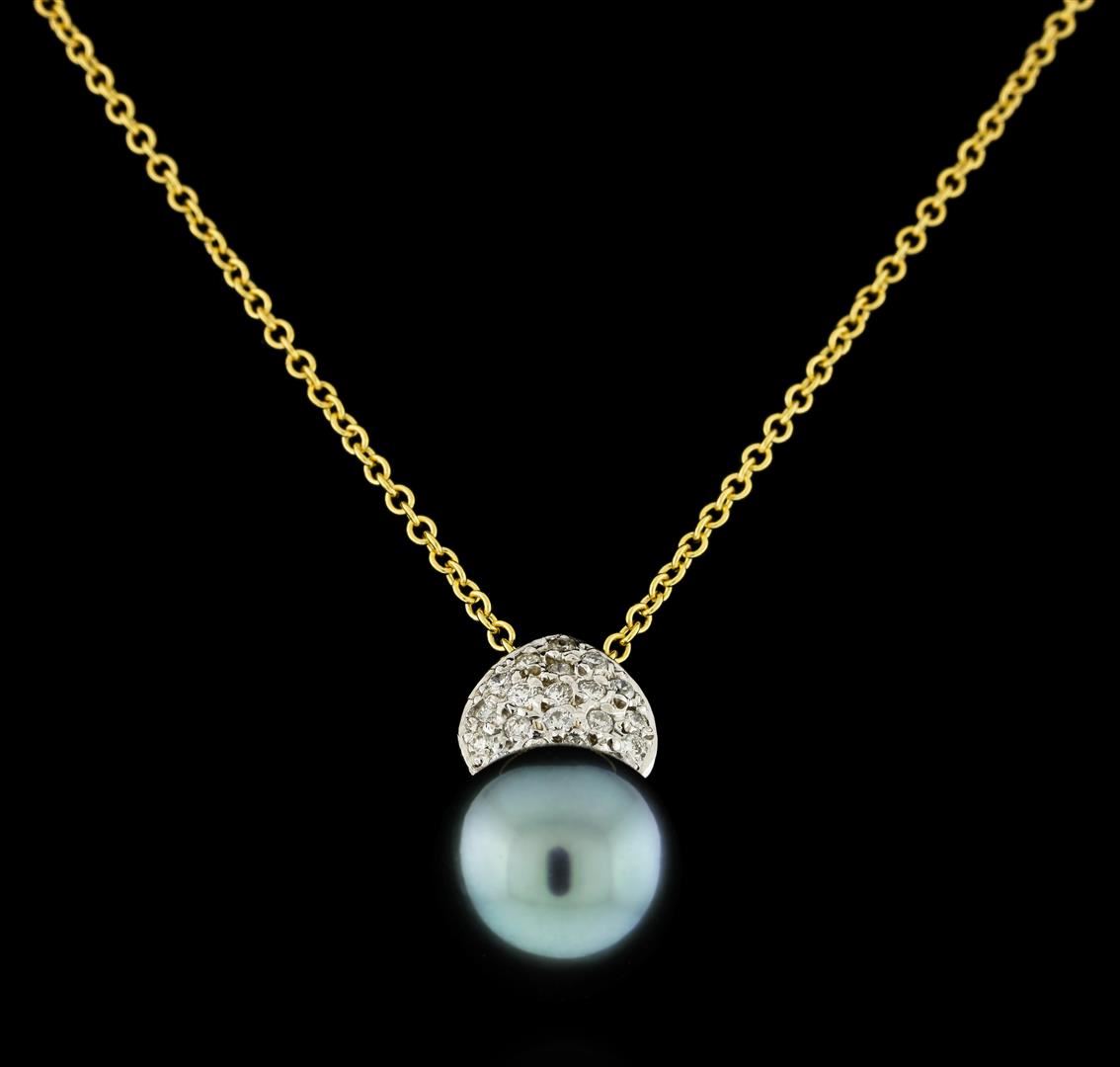 One pendant with chain : 14KT white gold weighing 1.3gm containing pearl and diamonds weighing 0.15ctw.