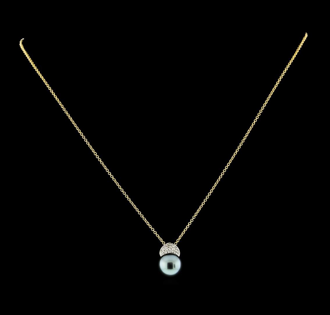 One pendant with chain : 14KT white gold weighing 1.3gm containing pearl and diamonds weighing 0.15ctw.