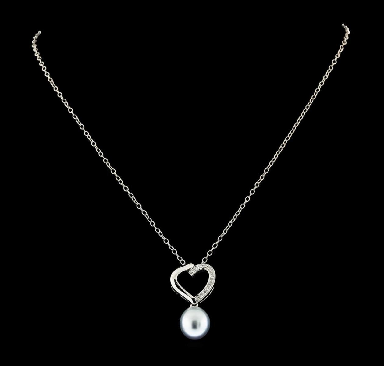 One pendant with chain : 14KT white gold weighing 2.80gm containing pearl and diamonds weighing 0.18ctw.