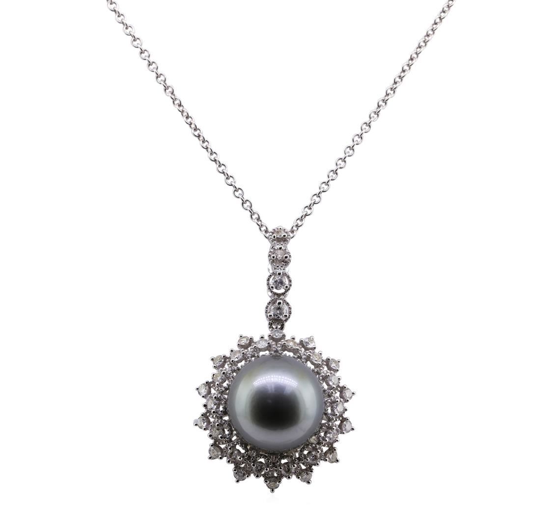 One Pearl and Diamond Pendant With Chain - 18KT White Gold. AIG certified. See Appraisal for more details. AIG Appraised.