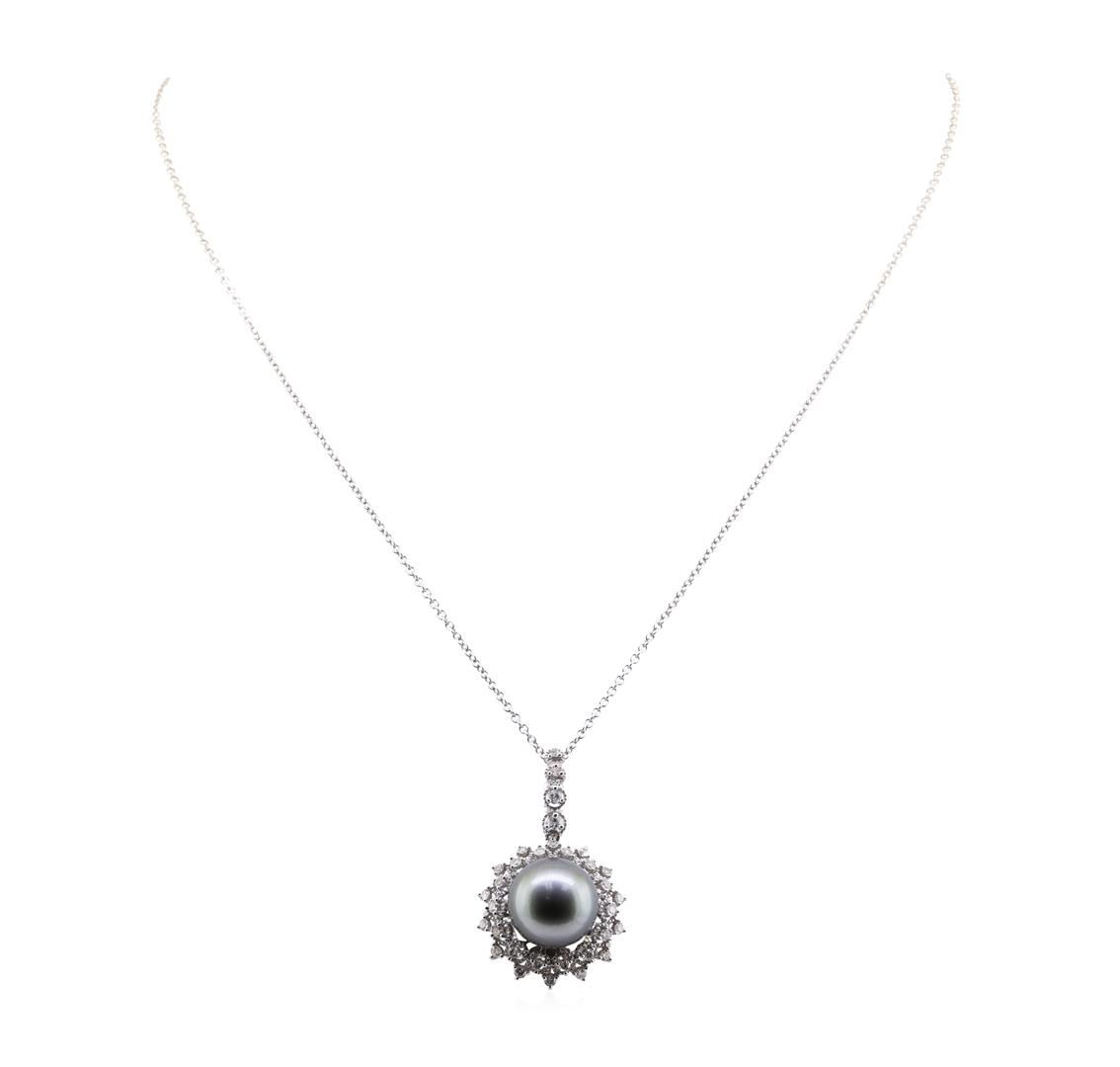 One Pearl and Diamond Pendant With Chain - 18KT White Gold. AIG certified. See Appraisal for more details. AIG Appraised.
