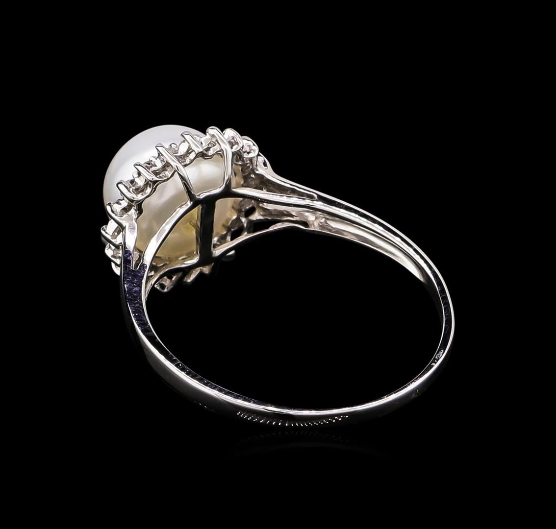 One ring featuring: 14KT white gold weighing 2.00 grams containing one pearl and side diamonds with a total weight of 0.18ct.