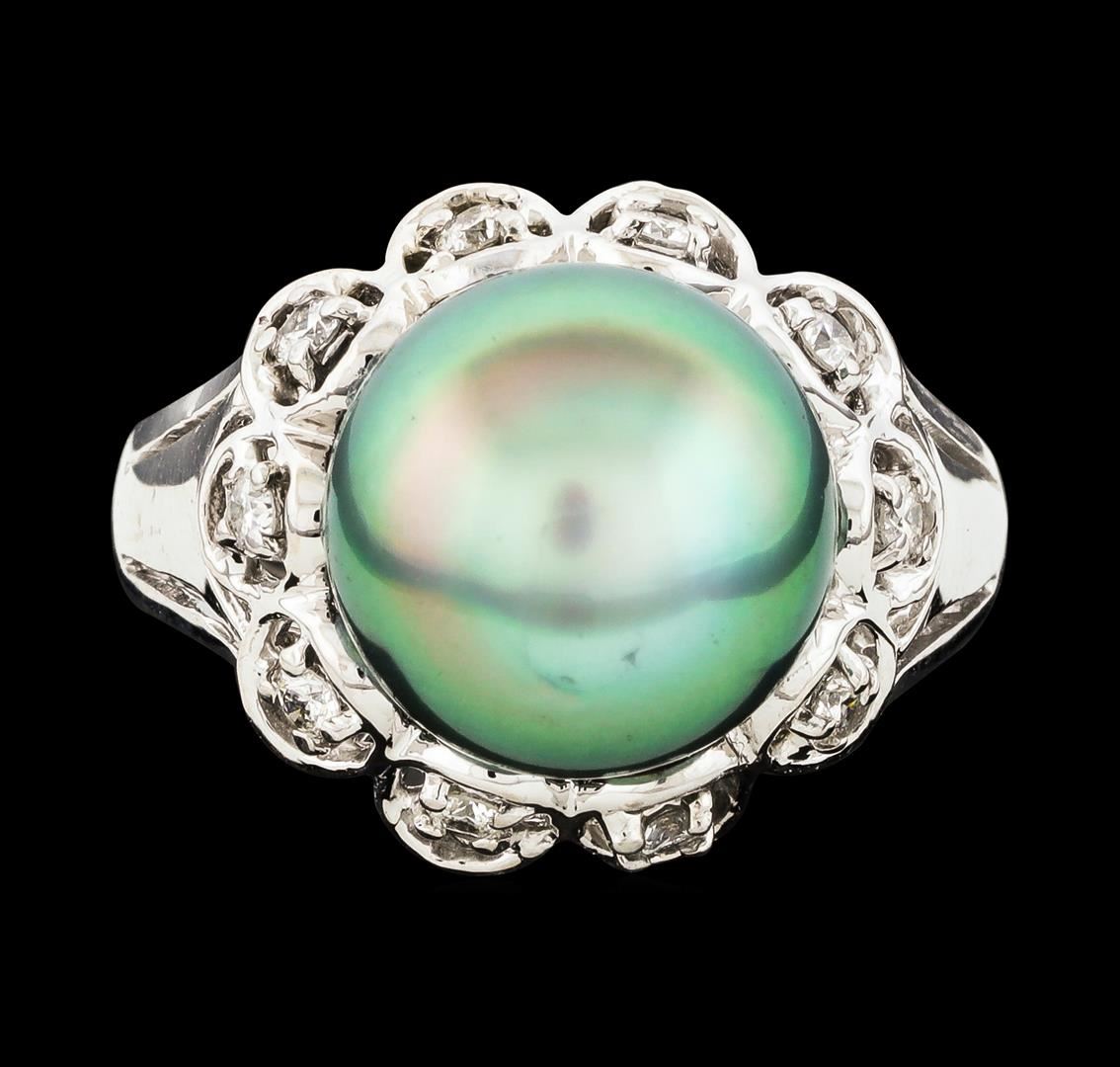 One ring : 14KT white gold weighing 6.34gm containing one pearl with side diamonds weighing 0.27ctw.