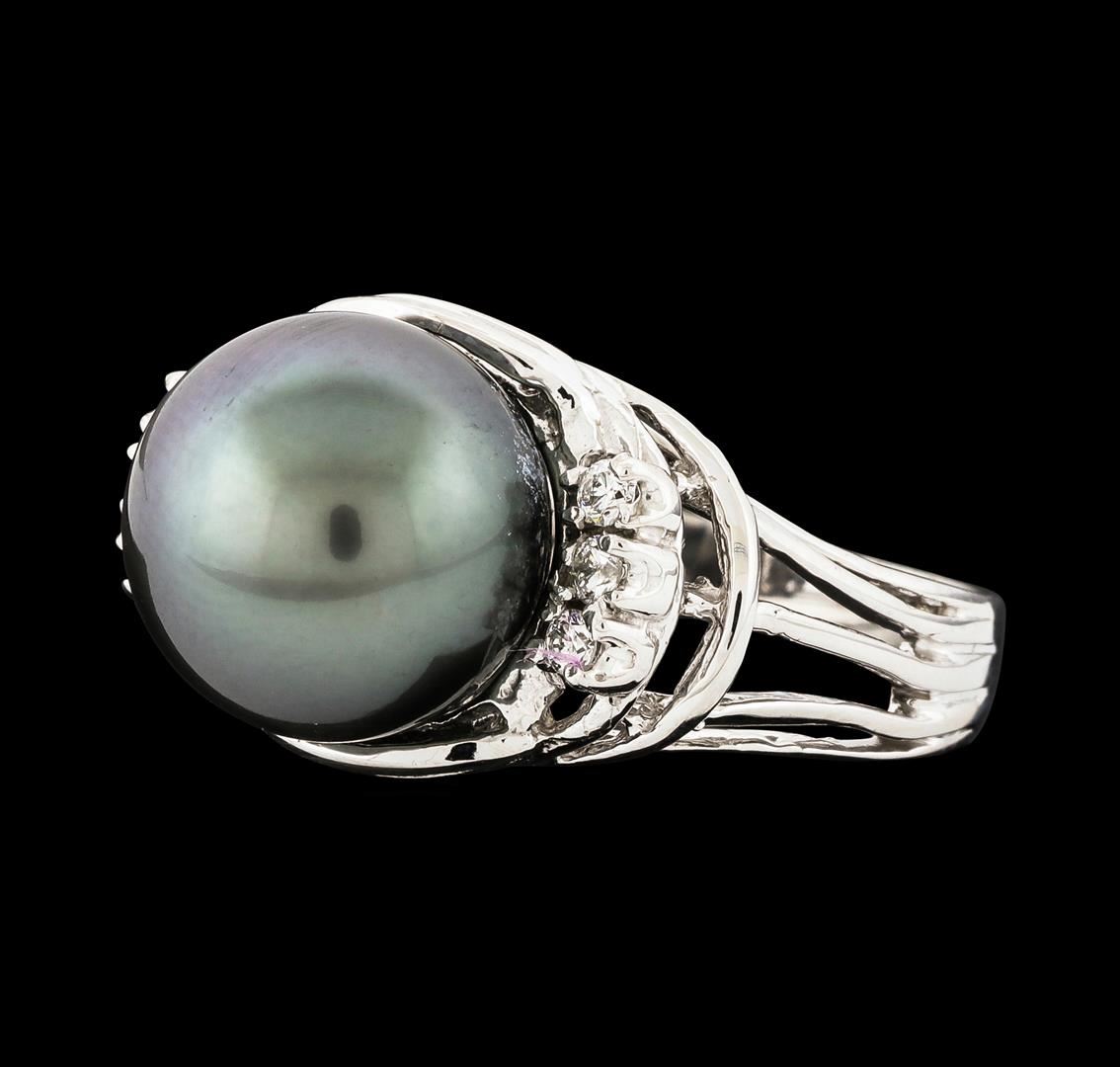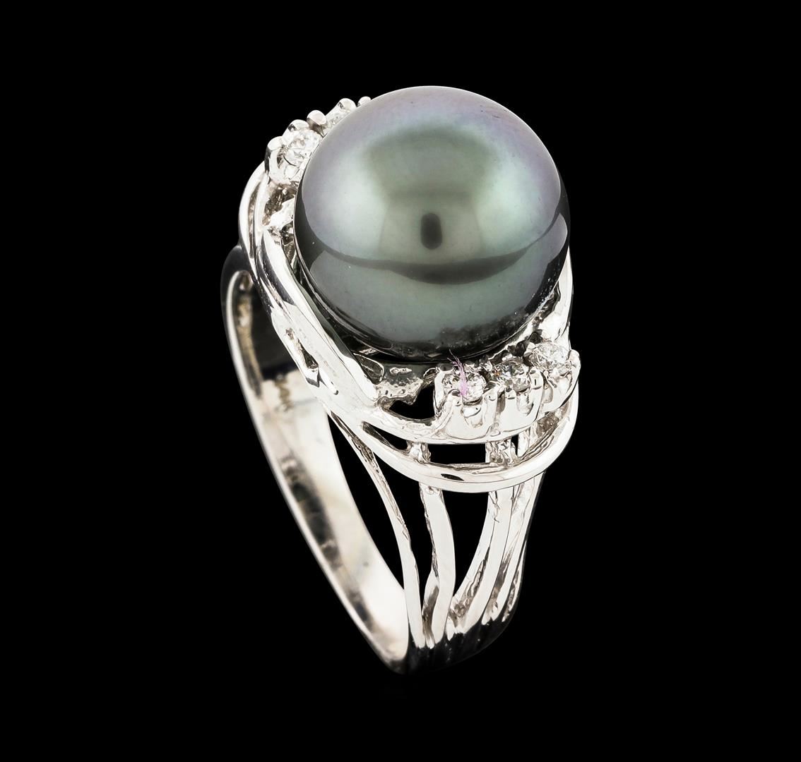One ring : 14KT white gold weighing 4.87gm containing one pearl with side diamonds weighing 0.16ctw.