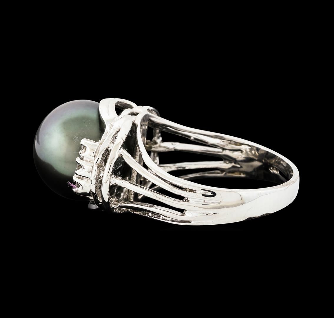 One ring : 14KT white gold weighing 4.87gm containing one pearl with side diamonds weighing 0.16ctw.