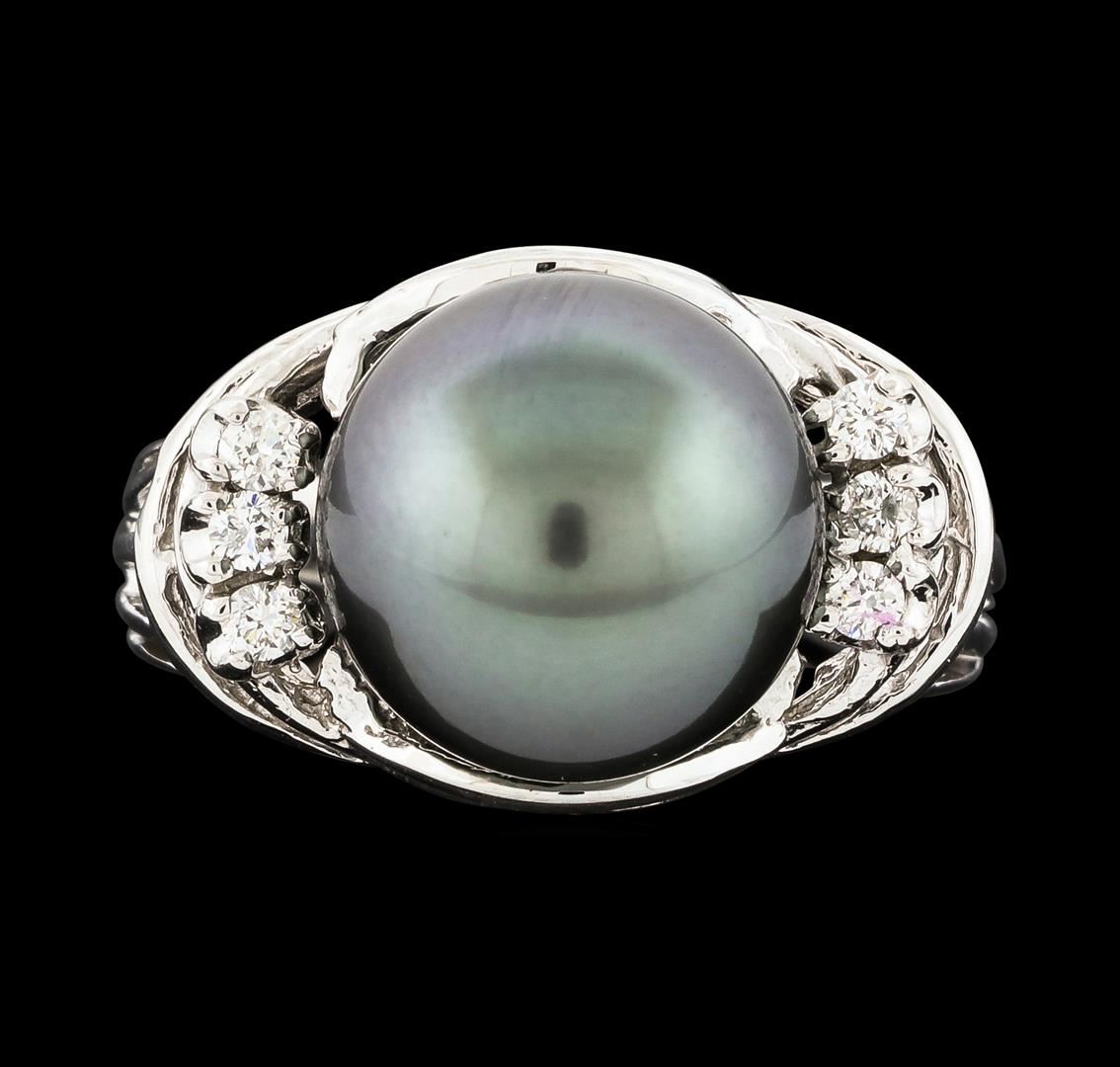 One ring : 14KT white gold weighing 4.87gm containing one pearl with side diamonds weighing 0.16ctw.