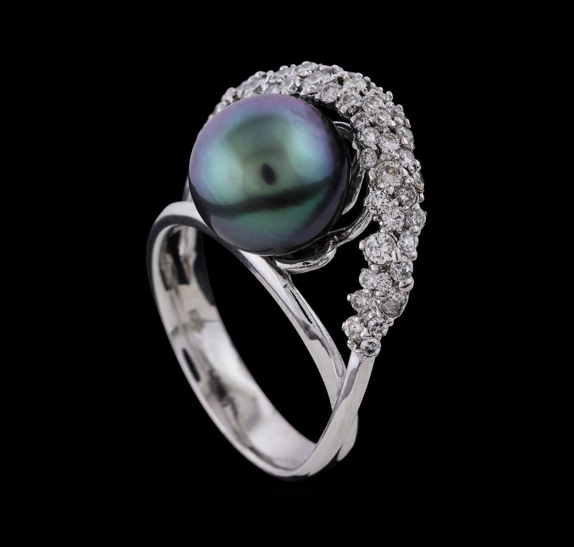 One ring : 14KT white gold weighing 4.70gm featuring pearl and diamonds weighing 0.75ctw.