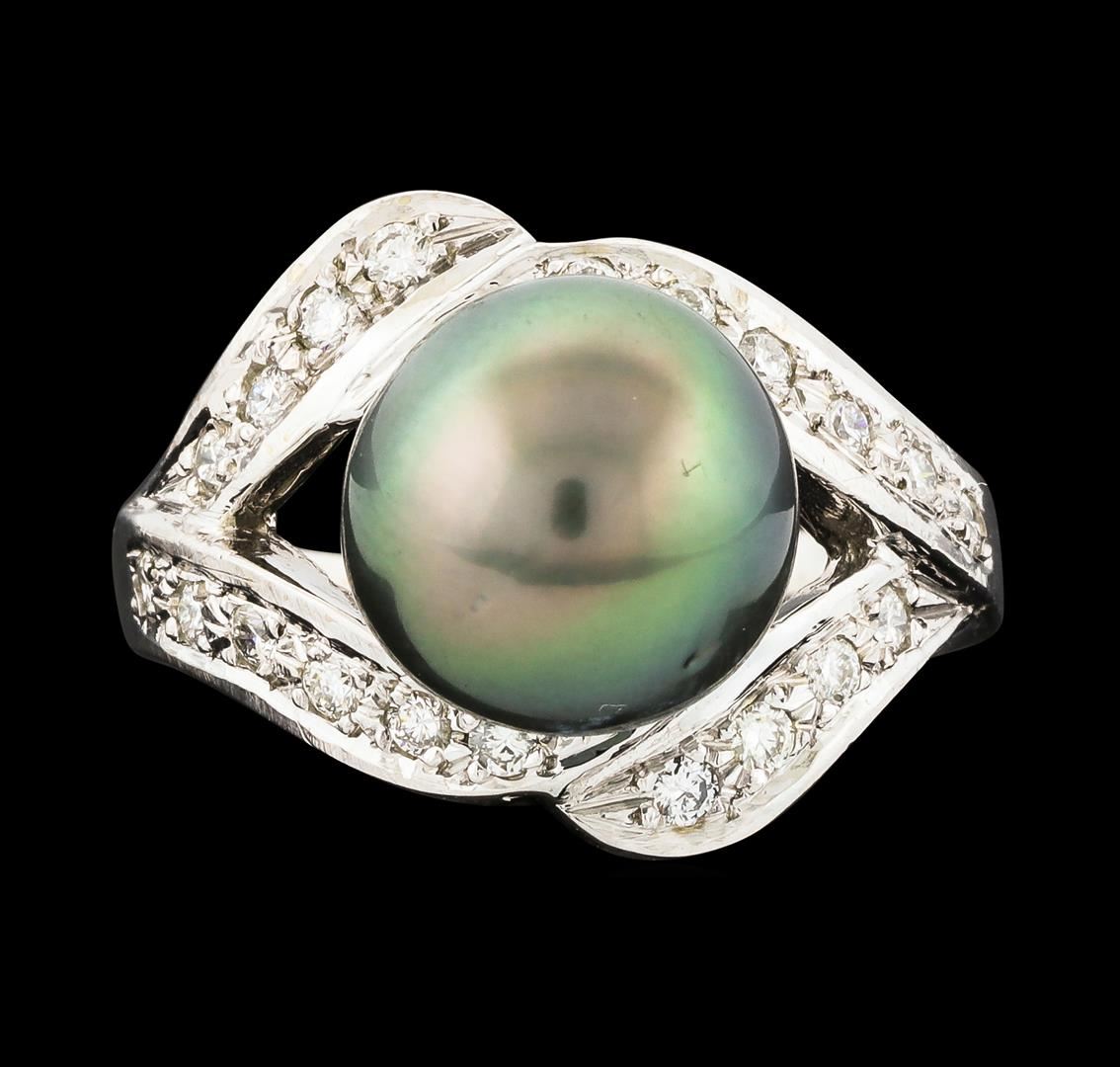 One ring : 14KT white gold weighing 6.50gm containing one pearl with side diamonds weighing 0.33ctw.