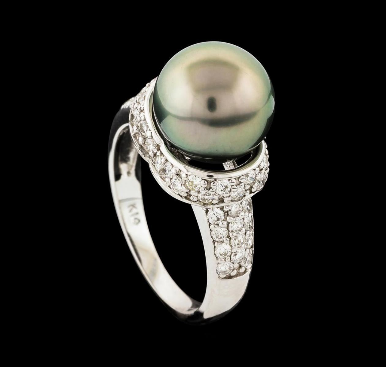 One ring : 14KT white gold weighing 4.11gm containing one pearl with side diamonds weighing 0.73ctw.
