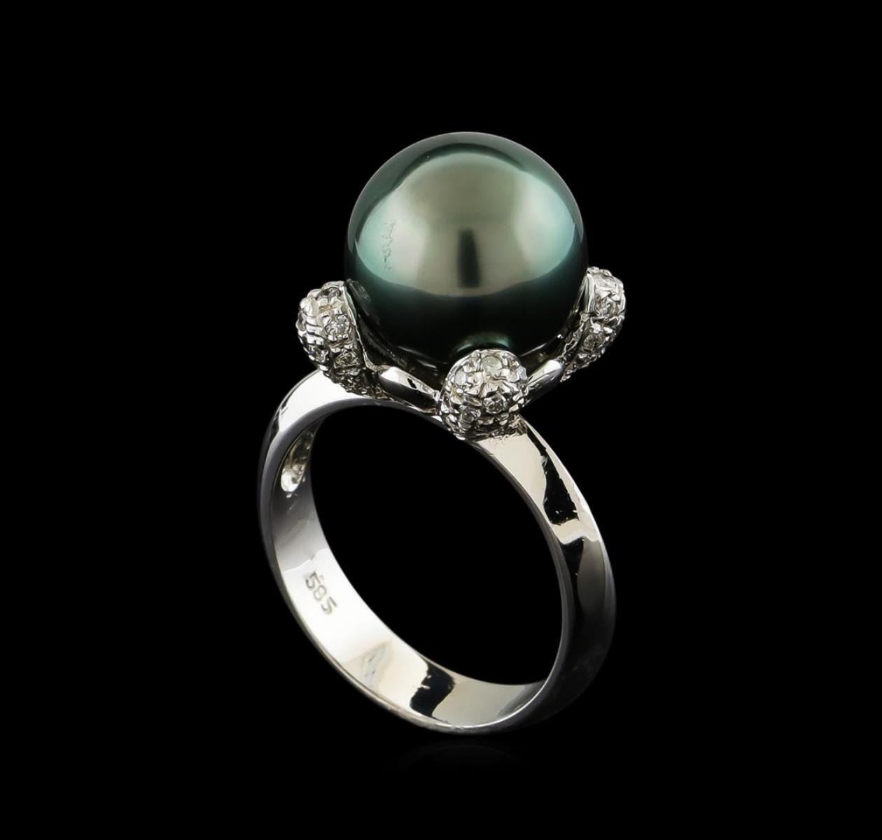 One Ring featuring: 14KT White Gold weighing 4.61 grams containing one Pearl and Diamonds with a total diamond weight of 0.32ct.