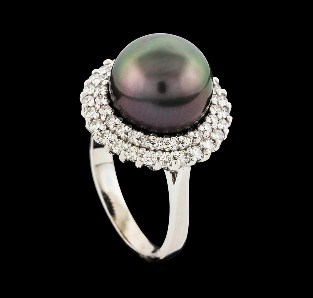 One ring : 14KT white gold weighing 5.46gm containing one pearl with side diamonds weighing 0.71ctw.