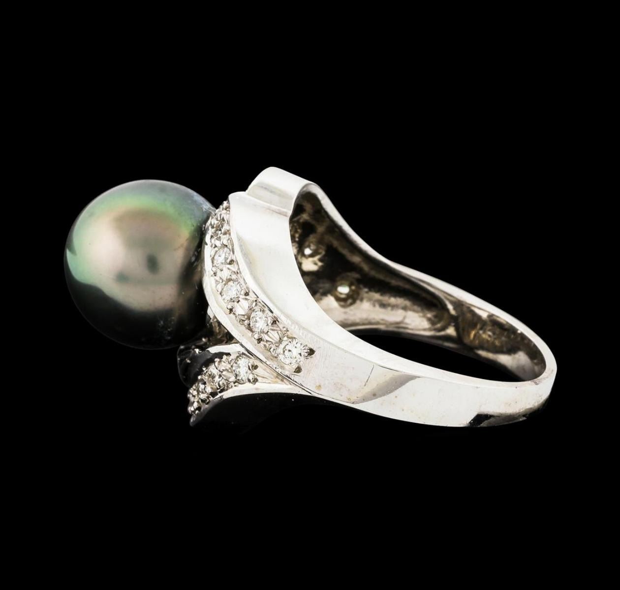 One ring : 14KT white gold weighing 6.50gm containing one pearl with side diamonds weighing 0.33ctw.