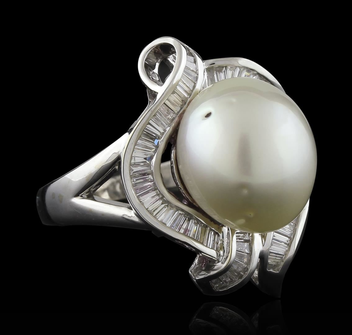 One ring featuring: 18KT white gold weighing 9.20 grams containing one pearl measuring approximately 13.5mm and diamonds with a total weight of 1.10ct.