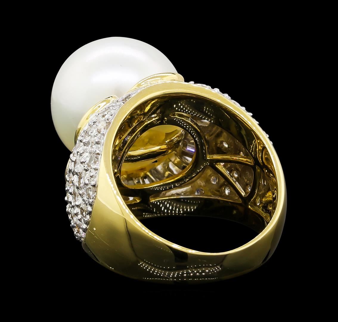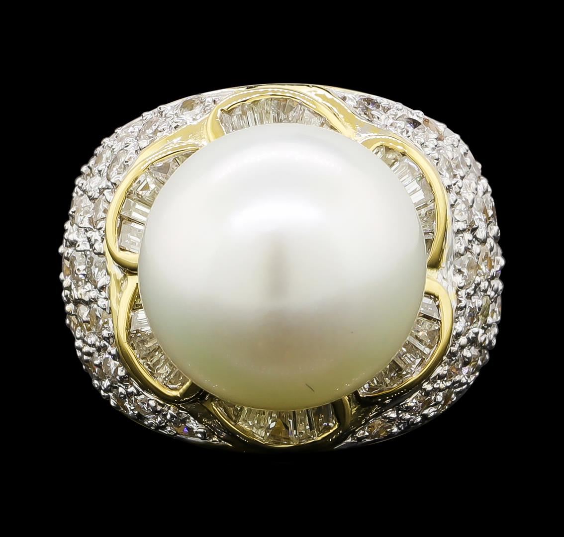 One ring featuring: 18KT Yellow Gold containing Pearl and Diamonds with a total weight of 1.39ct. Total Weight of Ring: 16 grams.