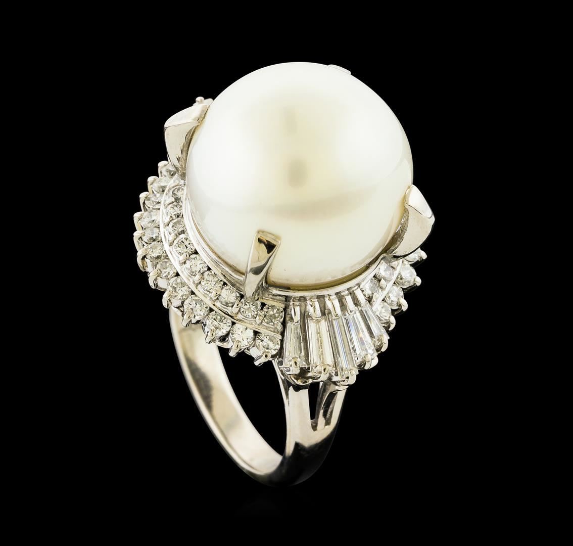 One ring featuring: Platinum containing Pearl and Diamonds with a total weight of 1.12ct. Total Weight of Ring: 15.7 grams.