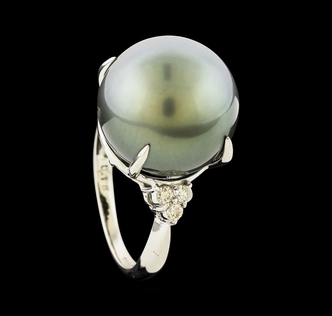 One ring featuring: Platinum containing Pearl and Diamonds with a total weight of 0.18ct. Total Weight of Ring: 10.1 grams.